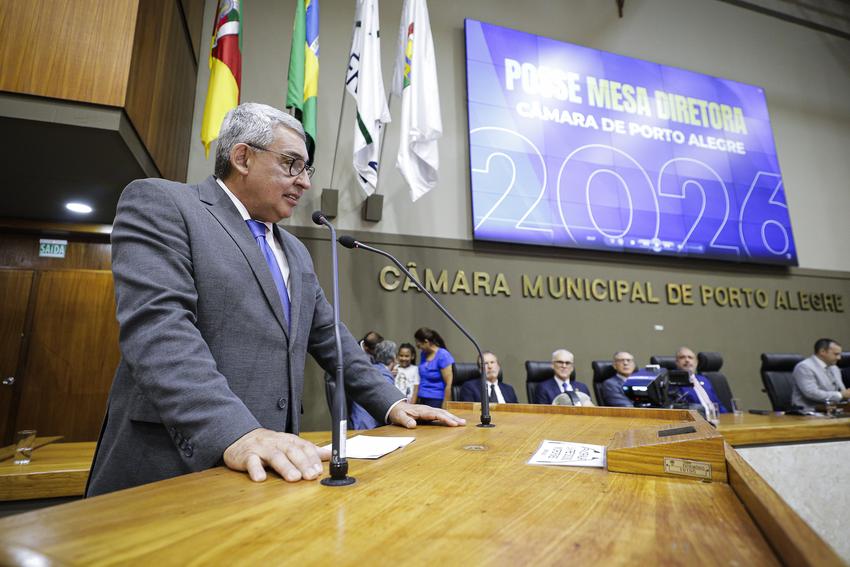 Porto Alegre, RS, Brasil - 05/01/2026 - Posse do Presidente da CMPA. O vereador Moisés Barboza (PSDB) foi eleito presidente da Câmara Municipal de Porto Alegre para o ano de 2026. Local: Câmara Municipal de Porto Alegre, Av. Loureiro da Silva, 255 - Centro Histórico. Fotos: Cesar Lopes/ PMPA.