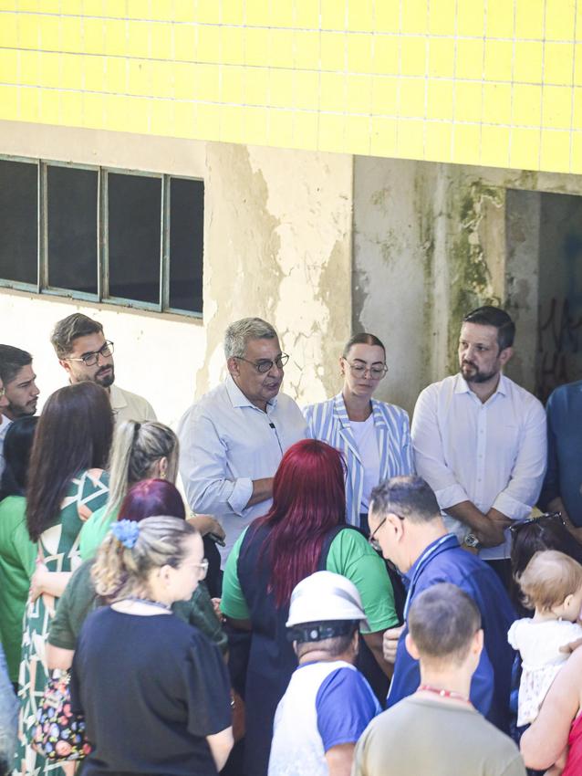 Porto Alegre, RS, Brasil, 05/01/2026: Acompanhado do secretário municipal de Educação, Leonardo Pascoal, o prefeito, Sebastião Melo, participou, do ato de assinatura da ordem de início das obras da Escola Municipal de Educação Infantil Raul Cauduro, no Bairro Mário Quintana. Foto: Alex Rocha/PMPA