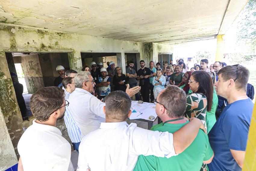 Porto Alegre, RS, Brasil, 05/01/2026: Acompanhado do secretário municipal de Educação, Leonardo Pascoal, o prefeito, Sebastião Melo, participou, do ato de assinatura da ordem de início das obras da Escola Municipal de Educação Infantil Raul Cauduro, no Bairro Mário Quintana. Foto: Alex Rocha/PMPA