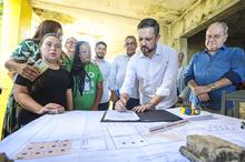 Porto Alegre, RS, Brasil, 05/01/2026: Acompanhado do secretário municipal de Educação, Leonardo Pascoal, o prefeito, Sebastião Melo, participou, do ato de assinatura da ordem de início das obras da Escola Municipal de Educação Infantil Raul Cauduro, no Bairro Mário Quintana. Foto: Alex Rocha/PMPA