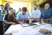 Porto Alegre, RS, Brasil, 05/01/2026: Acompanhado do secretário municipal de Educação, Leonardo Pascoal, o prefeito, Sebastião Melo, participou, do ato de assinatura da ordem de início das obras da Escola Municipal de Educação Infantil Raul Cauduro, no Bairro Mário Quintana. Foto: Alex Rocha/PMPA