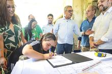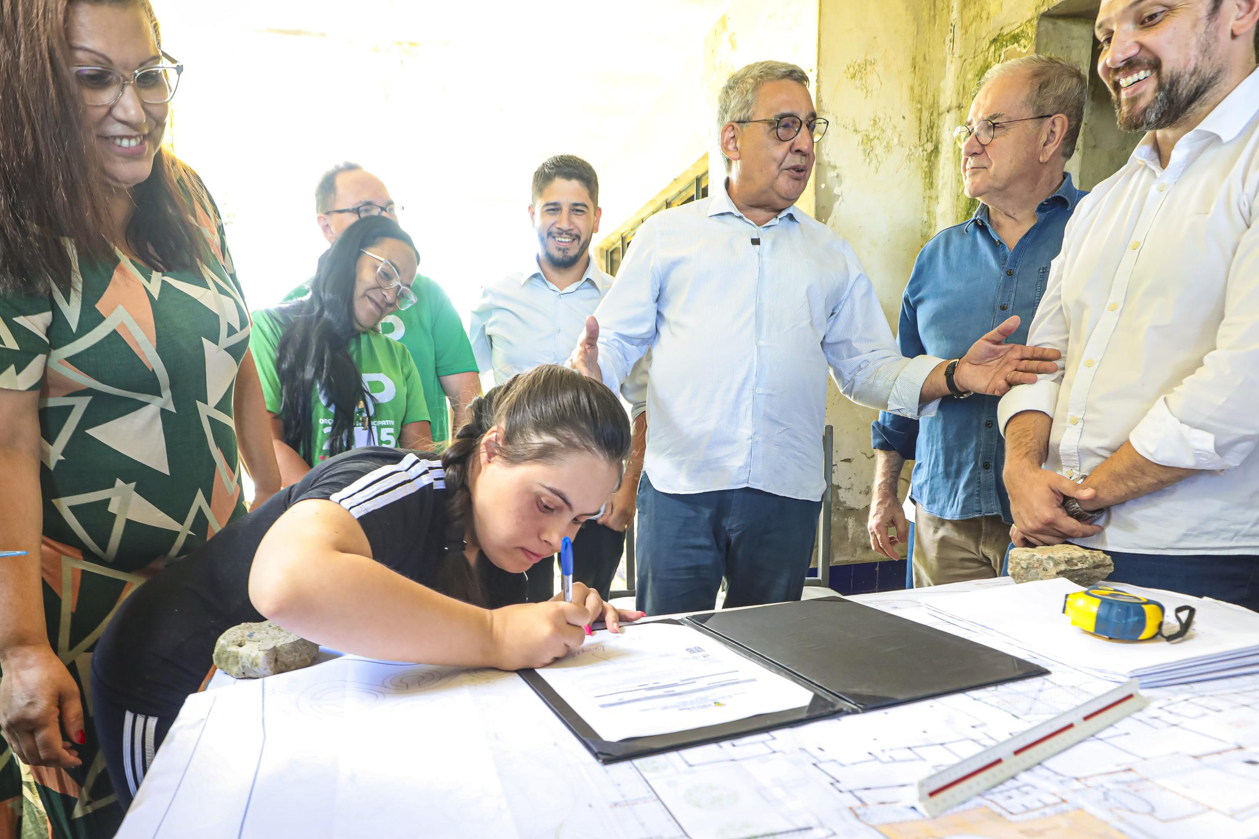 Porto Alegre, RS, Brasil, 05/01/2026: Acompanhado do secretário municipal de Educação, Leonardo Pascoal, o prefeito, Sebastião Melo, participou, do ato de assinatura da ordem de início das obras da Escola Municipal de Educação Infantil Raul Cauduro, no Bairro Mário Quintana. Foto: Alex Rocha/PMPA