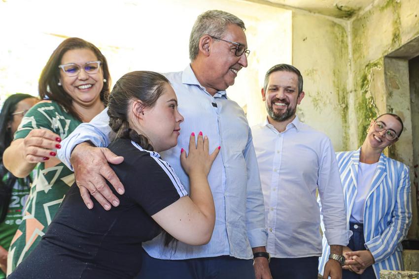 Porto Alegre, RS, Brasil, 05/01/2026: Acompanhado do secretário municipal de Educação, Leonardo Pascoal, o prefeito, Sebastião Melo, participou, do ato de assinatura da ordem de início das obras da Escola Municipal de Educação Infantil Raul Cauduro, no Bairro Mário Quintana. Foto: Alex Rocha/PMPA