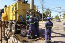 Porto Alegre, RS. 06/01/2026. DMAE realiza limpeza de rede de drenagem urbana no 4º Distrito.