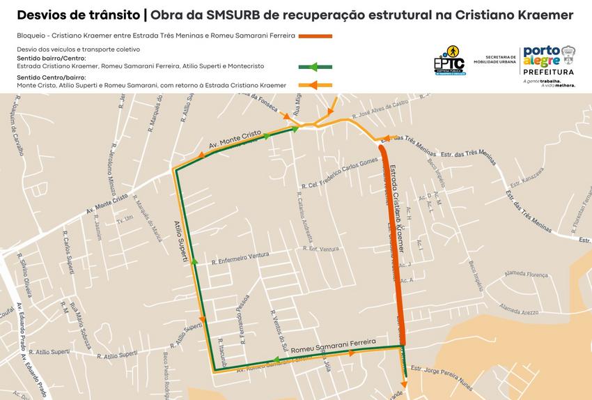 Porto Alegre, RS, Brasil, 06/01/2026: A Secretaria Municipal de Serviços Urbanos (SMSUrb) realiza a recuperação estrutural da Estrada Cristiano Kraemer, Zona Sul de Porto Alegre, no trecho entre a Estrada das Três Meninas e a rua Rio Grande, no sentido bairro-Centro. O local terá bloqueio total da via nos dias das intervenções para implantação do sistema de drenagem: quinta-feira, 8, sexta, 9, e sábado, 10, sendo permitido apenas o acesso local. Atualmente, os trabalhos estão concentrados na execução dos reforços estruturais da base. Foto: Arte Carlos Rohde/EPTC