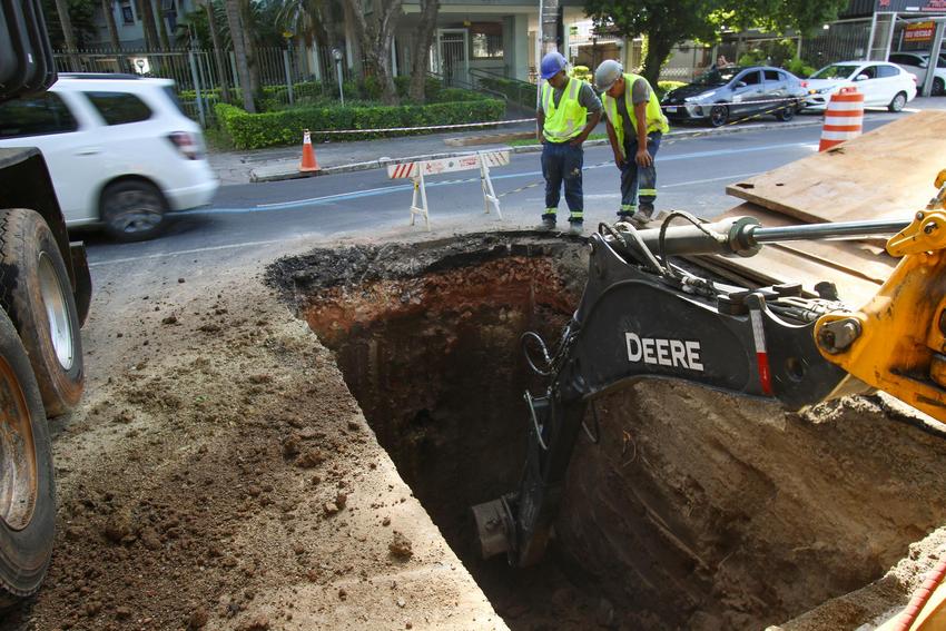 Porto Alegre, RS. 06/01/2026. DMAE realiza obras em rede coletora pluvial na Avenida Ipiranga entre as pontes da Av Lucas de Oliveira e da Rua Euclides da Cunha.