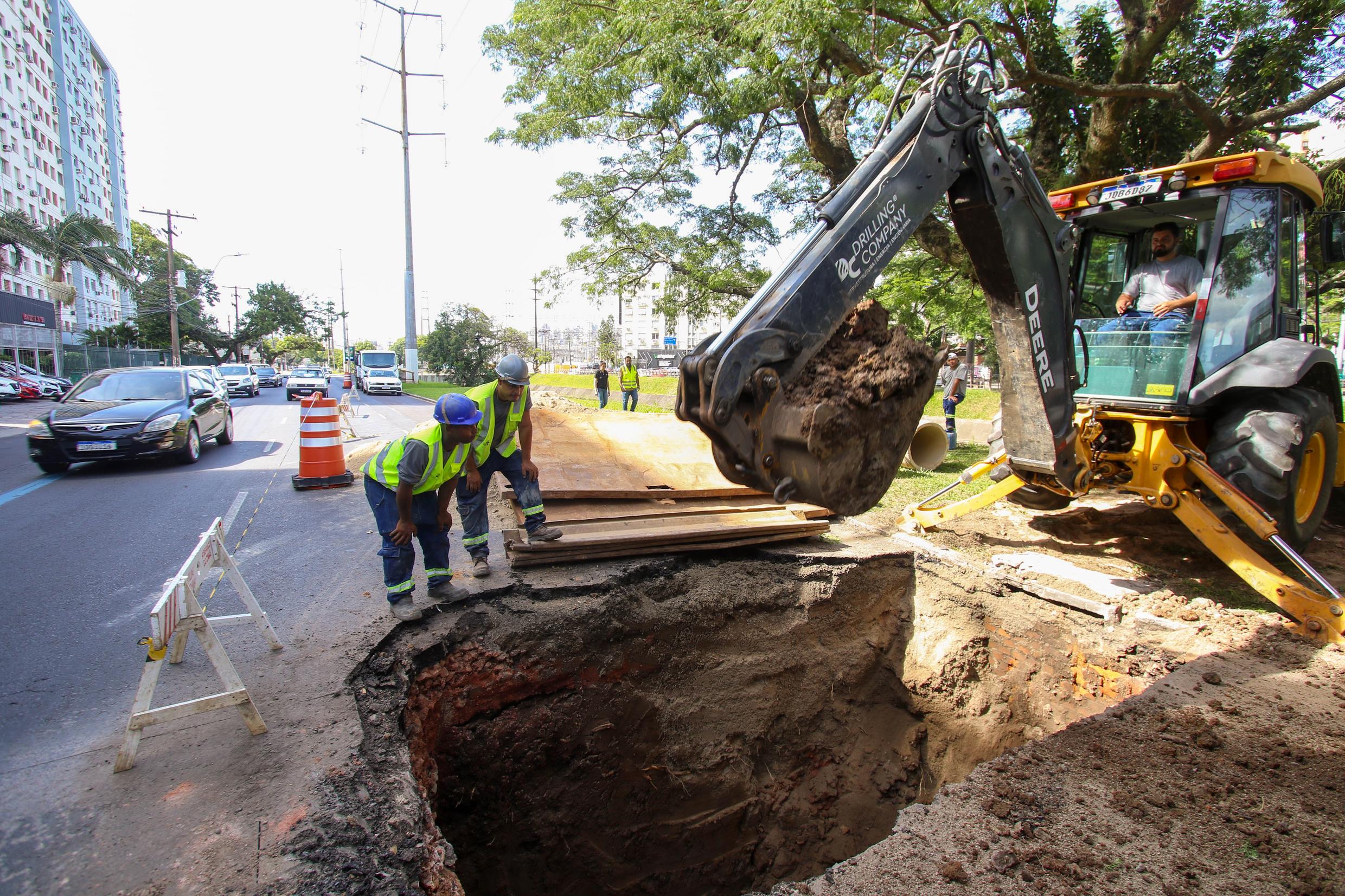 Porto Alegre, RS. 06/01/2026. DMAE realiza obras em rede coletora pluvial na Avenida Ipiranga entre as pontes da Av Lucas de Oliveira e da Rua Euclides da Cunha.