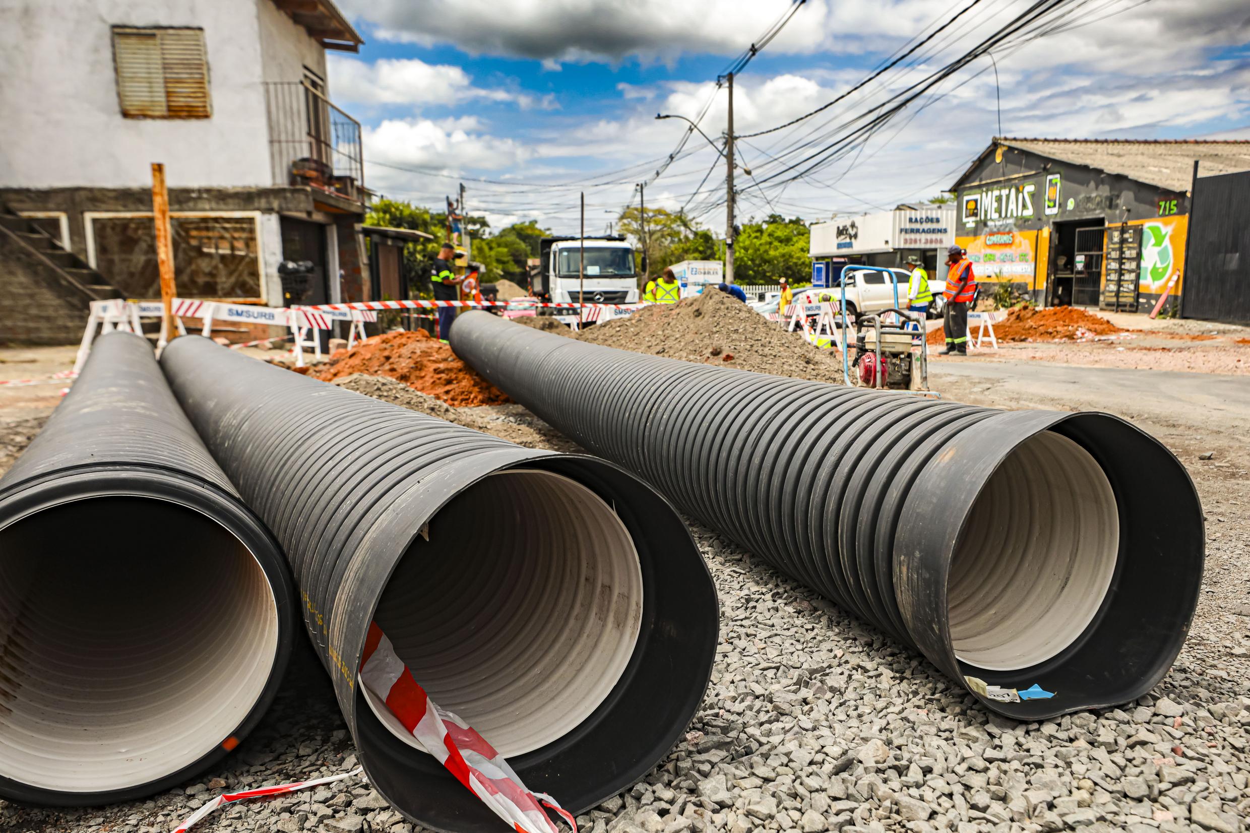 Porto Alegre, RS, Brasil, 08/01/2026: Nesta quinta-feira, 8, a Secretaria Municipal de Serviços Urbanos (Smsurb) retoma os serviços de recuperação estrutural do pavimento da Estrada Cristiano Kraemer, no trecho entre a Estrada das Três Meninas e a rua Rio Grande, no sentido bairro/Centro. Nesta semana, a obra avança para a etapa de implantação do sistema de drenagem. Para a execução dos serviços, será necessária a realização de cinco travessias da rede de drenagem ao longo do trecho em obras. As intervenções estão programadas para esta quinta, sexta e sábado, 8, 9 e 10. Foto: Alex Rocha/PMPA