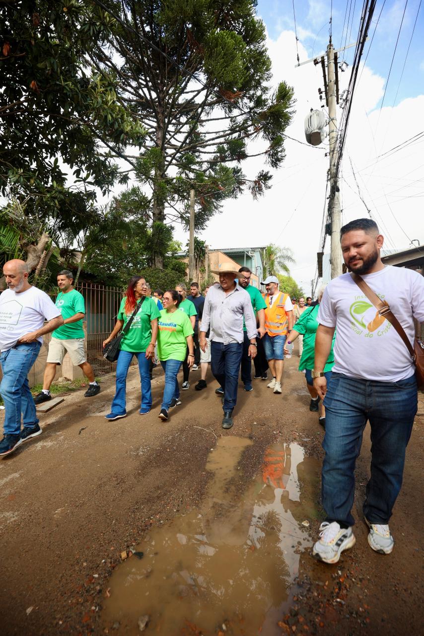 Porto Alegre - 17/01/2026: O programa Mais Comunidade esteve neste sábado, 17, no bairro Cristal, com uma agenda intensa de vistorias e encaminhamentos junto aos moradores. A ação reuniu secretarias municipais, departamentos e concessionárias para tratar de demandas relacionadas à mobilidade, drenagem, iluminação, coleta de resíduos, habitação e regularização fundiária. Foto: Gustavo Garbino / PMPA