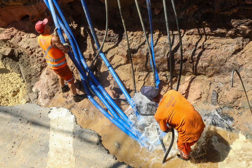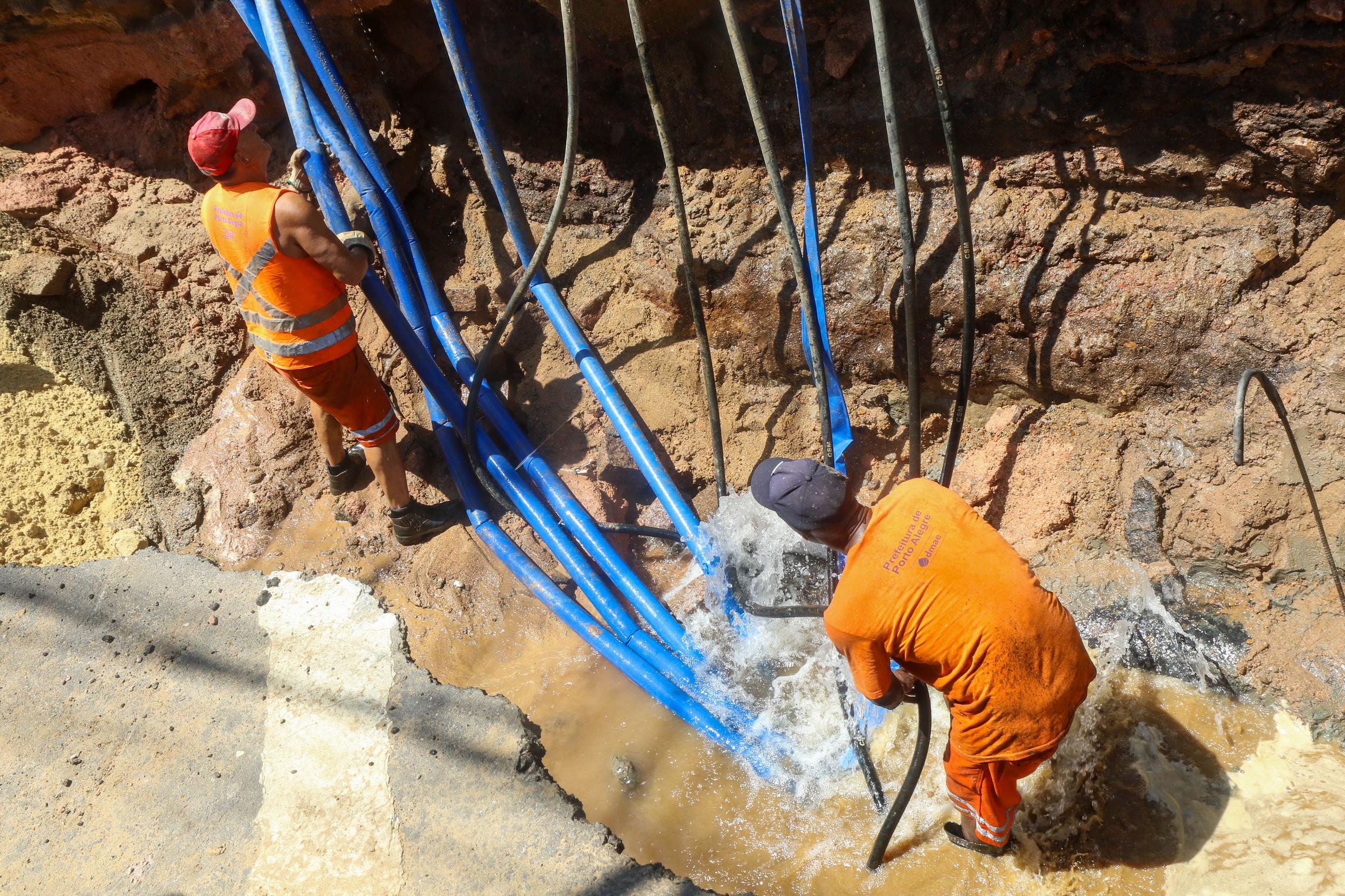 Porto Alegre, RS. Dmae realiza conserto de adutora na Av. Maranhão.