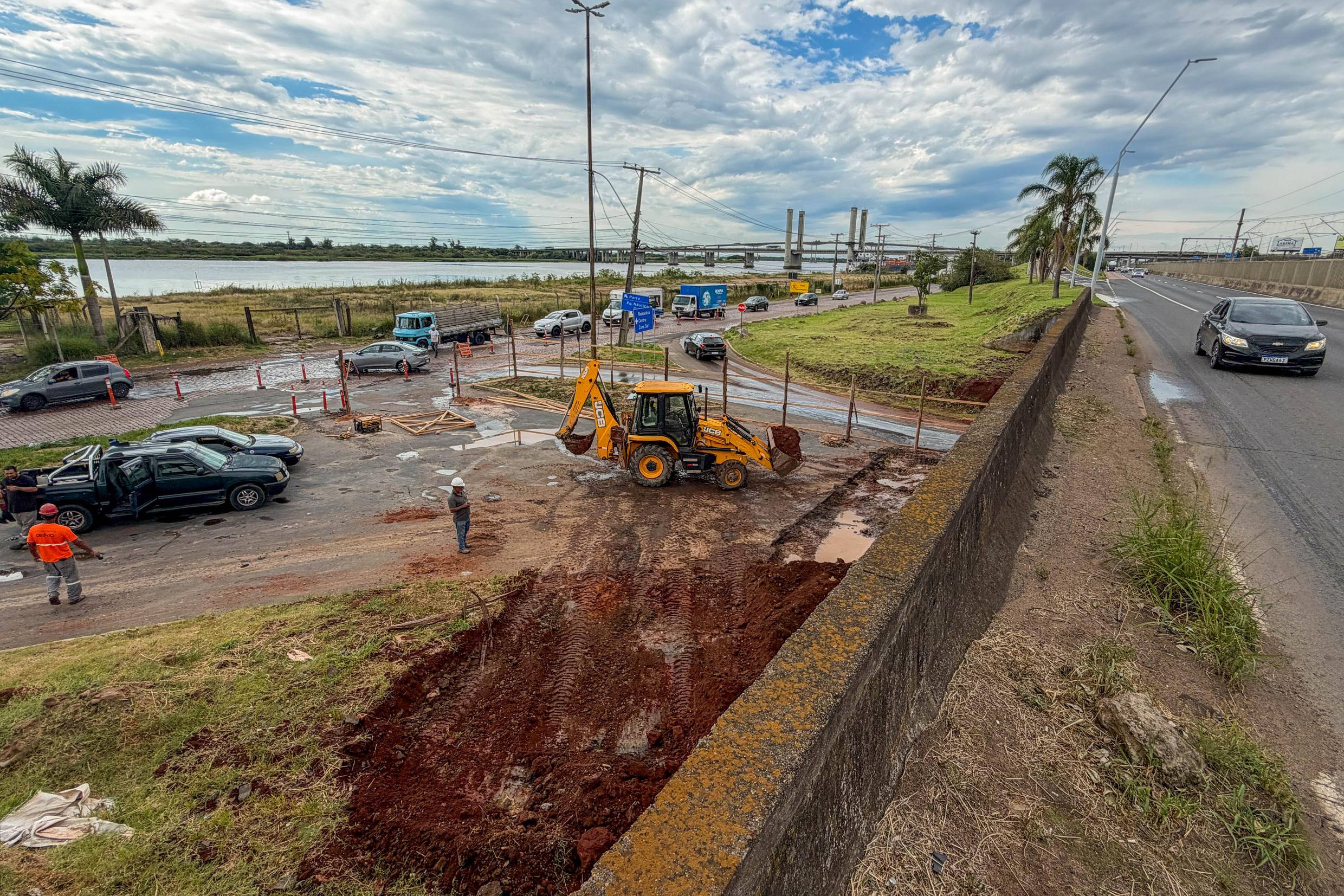 Porto Alegre, RS. Início das obras do portão de fechamento da comporta 12