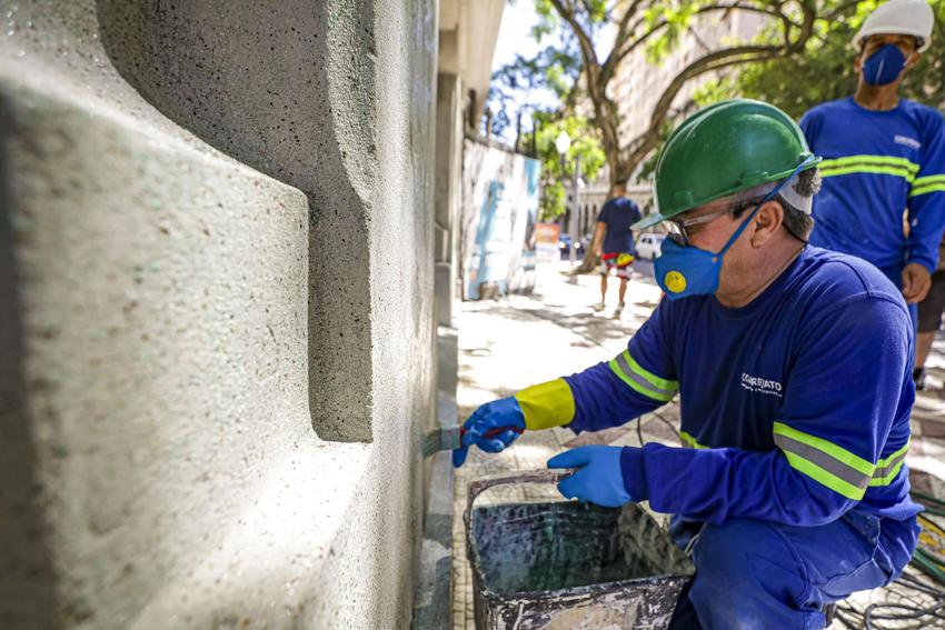 Porto Alegre, RS, Brasil, 03/02/2026: A Prefeitura de Porto Alegre realizou nesta terça-feira, 3, a limpeza das pichações no Viaduto Otávio Rocha, no Centro Histórico. A ação ocorreu após atos de vandalismo registrados na madrugada da última quinta-feira, 29, e integra uma força-tarefa do Executivo municipal voltada à preservação do patrimônio público. Foto: Alex Rocha/PMPA