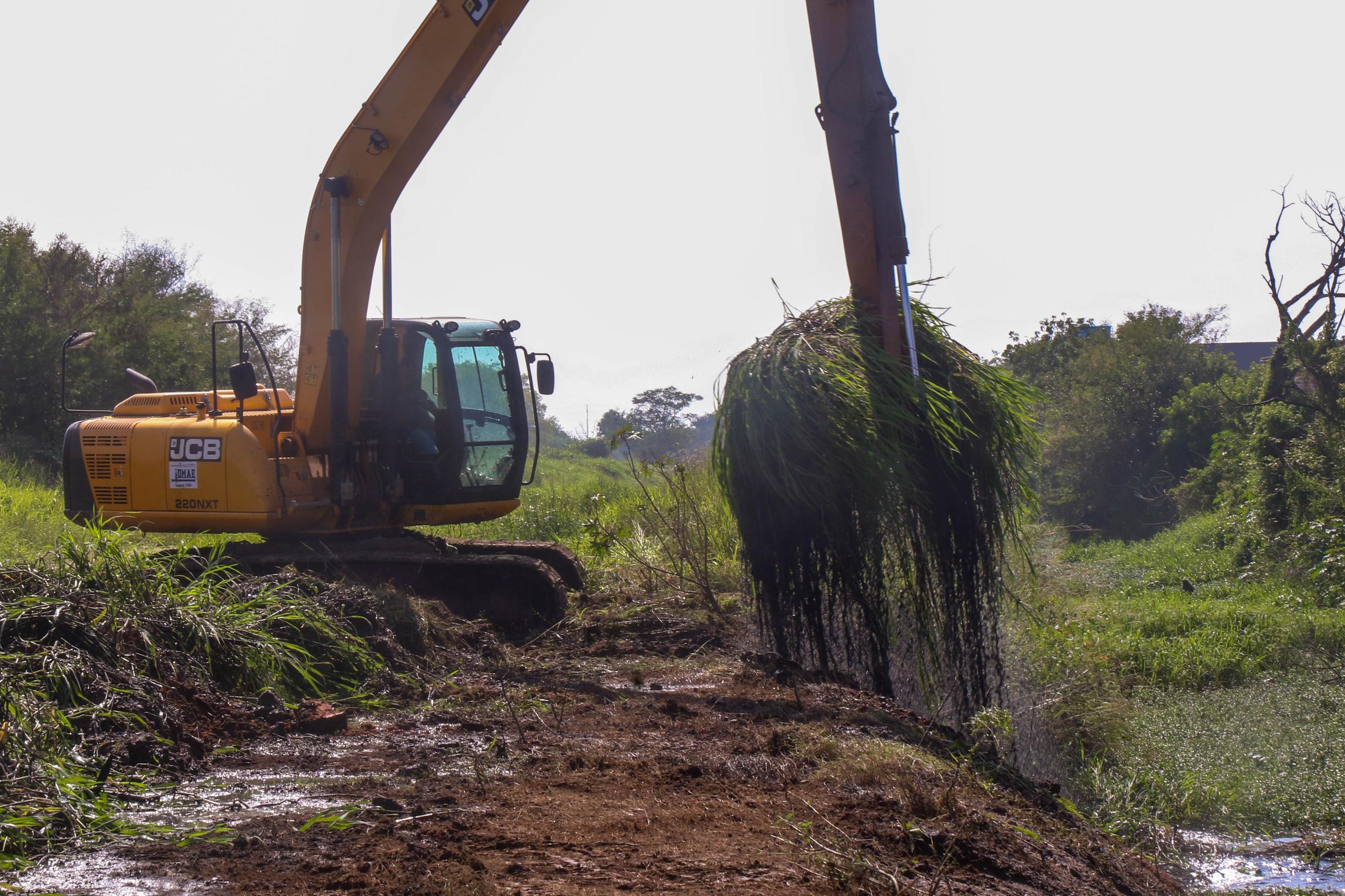 Porto Alegre, RS. 04/02/2026. DMAE realiza a retirada de macrófitas do canal da Estação de Bombeamento de Águas Pluviais n°10, no bairro Sarandi.
