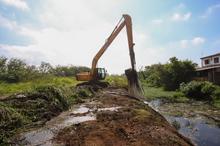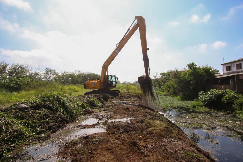 Porto Alegre, RS. 04/02/2026. DMAE realiza a retirada de macrófitas do canal da Estação de Bombeamento de Águas Pluviais n°10, no bairro Sarandi.