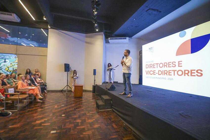 Porto Alegre, RS, Brasil, 04/02/2026: 201 diretores e vice-diretores das escolas da Rede Municipal tomaram posse nesta quarta-feira, 4, em cerimônia realizada no auditório da Secretaria Municipal de Educação (Smed). Este é o primeiro grupo de gestores escolares aprovado por meio do novo processo de habilitação para o exercício da função. Foto: Alex Rocha/PMPA
