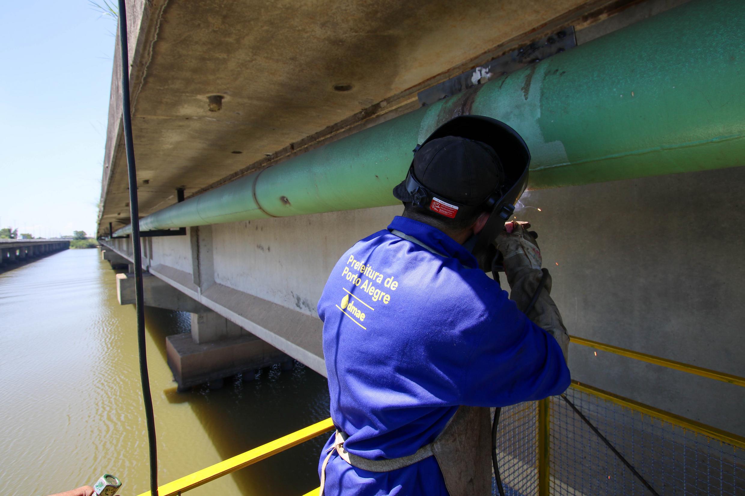Conserto em adutora na ponte Saco da Alemoa, região Arquipélago