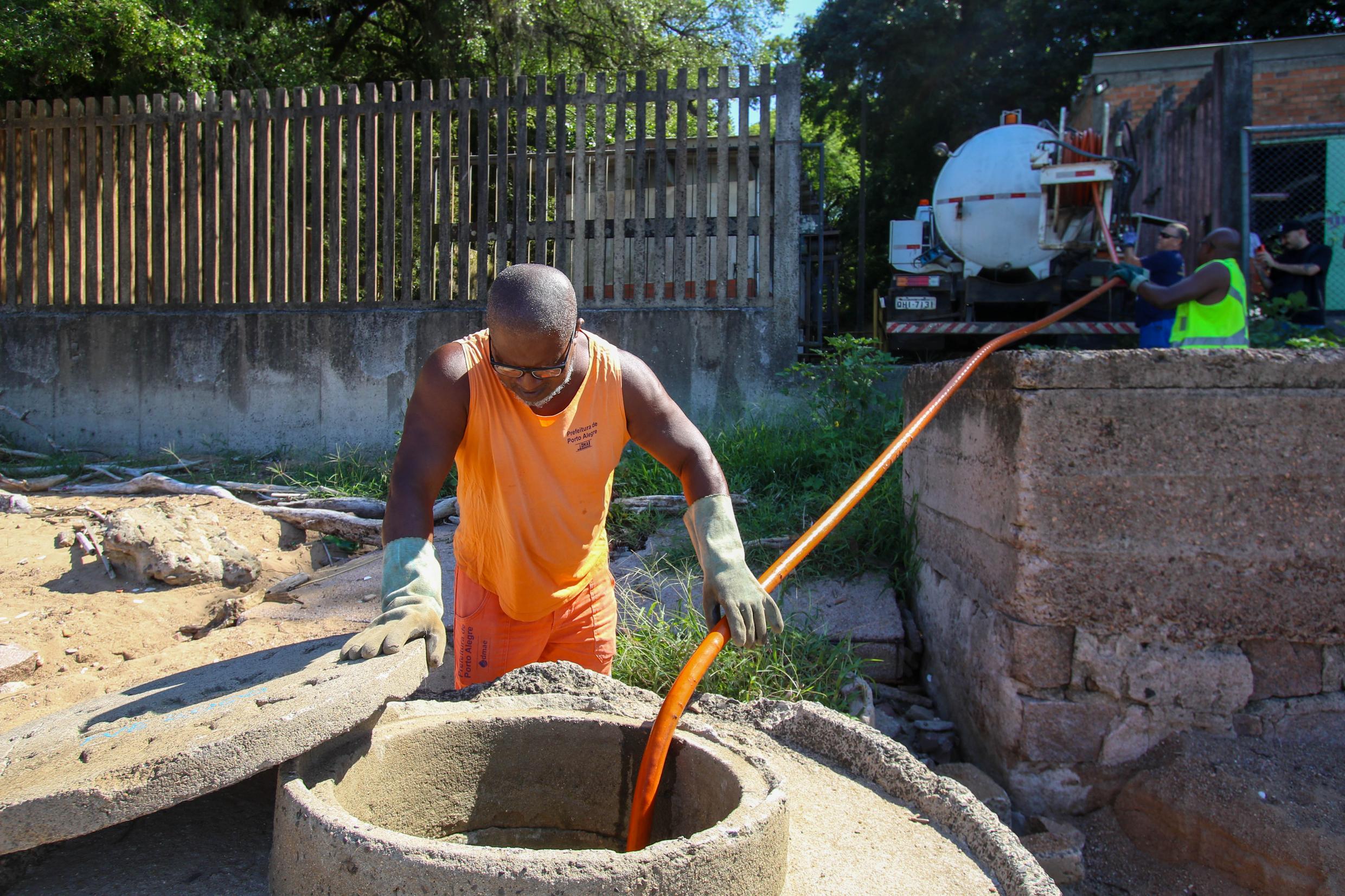 Porto Alegre, RS. 05/02/2026. DMAE realiza serviço de desobstrução e limpeza da rede de esgoto cloacal na praia da Pedra Redonda.