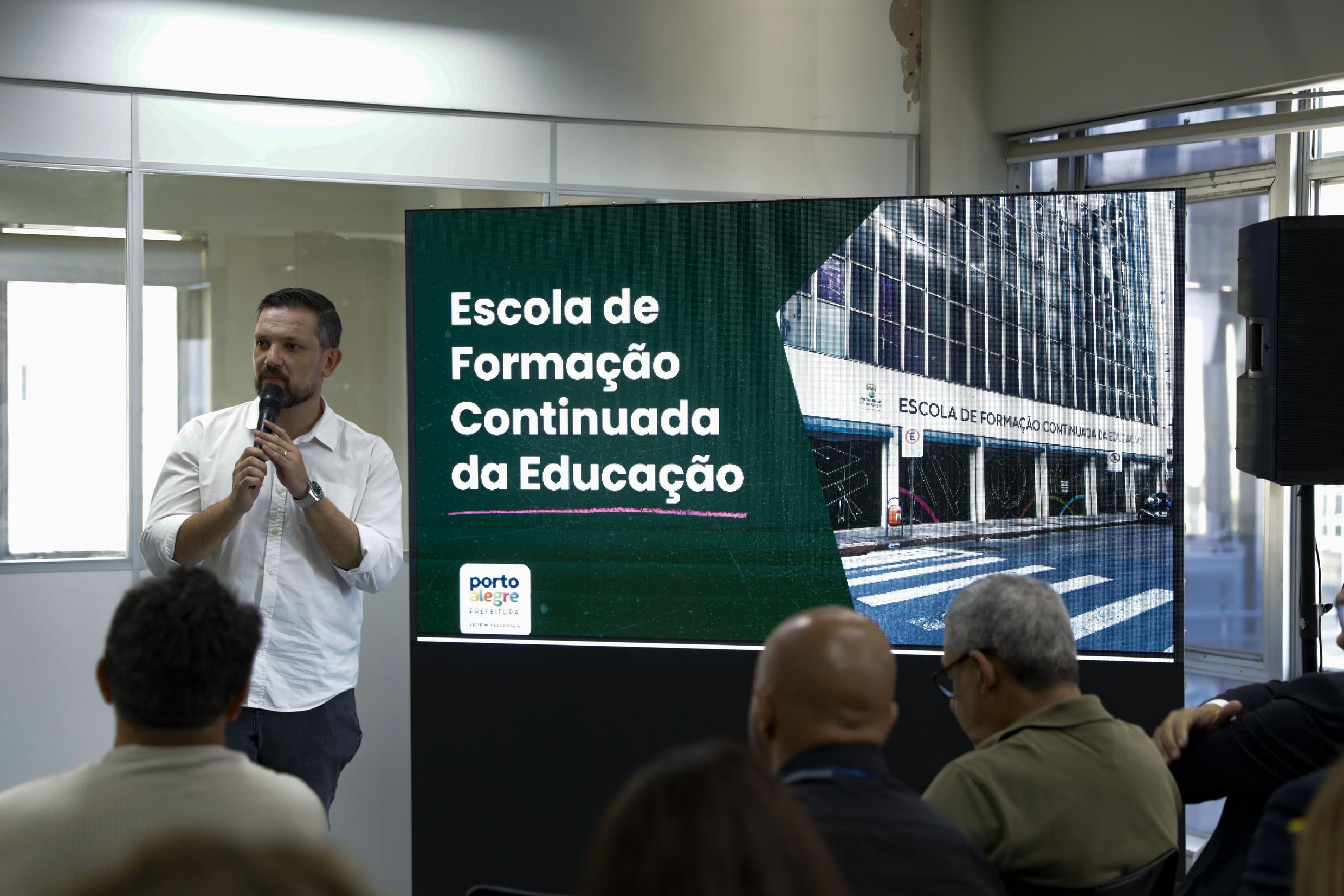 Porto Alegre, RS, Brasil, 05/02/2026: A Prefeitura de Porto Alegre, através da Secretaria Municipal de Educação (SMED), entregou, nesta quinta-feira, 5, a Escola de Formação Continuada da Educação. Com 12 salas de aula, um auditório, cinco salas de reuniões e uma sala de tecnologia, o espaço inédito na Capital oferecerá trilhas formativas voltadas a todos os professores do Município, realizadas por professores da própria Rede. Foto: Nathally Borowsky/PMPA