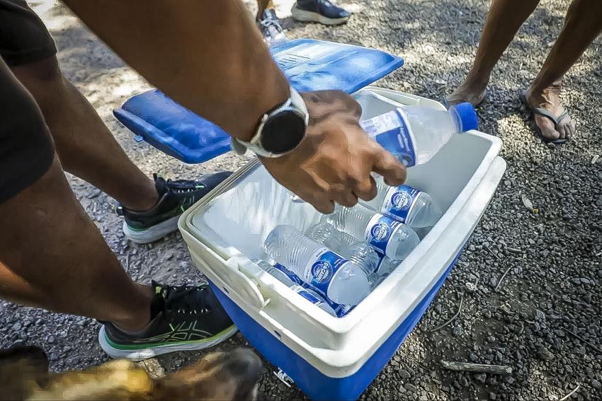 Porto Alegre, RS, Brasil, 06/02/2026: A abordagem social acontece diariamente, com equipes presentes nas ruas da cidade. Em períodos de calor extremo, o trabalho é intensificado para reduzir riscos à saúde das pessoas em situação de rua. A entrega de água gelada e chinelos é cuidado imediato para esse público. Foto: Alex Rocha/PMPA