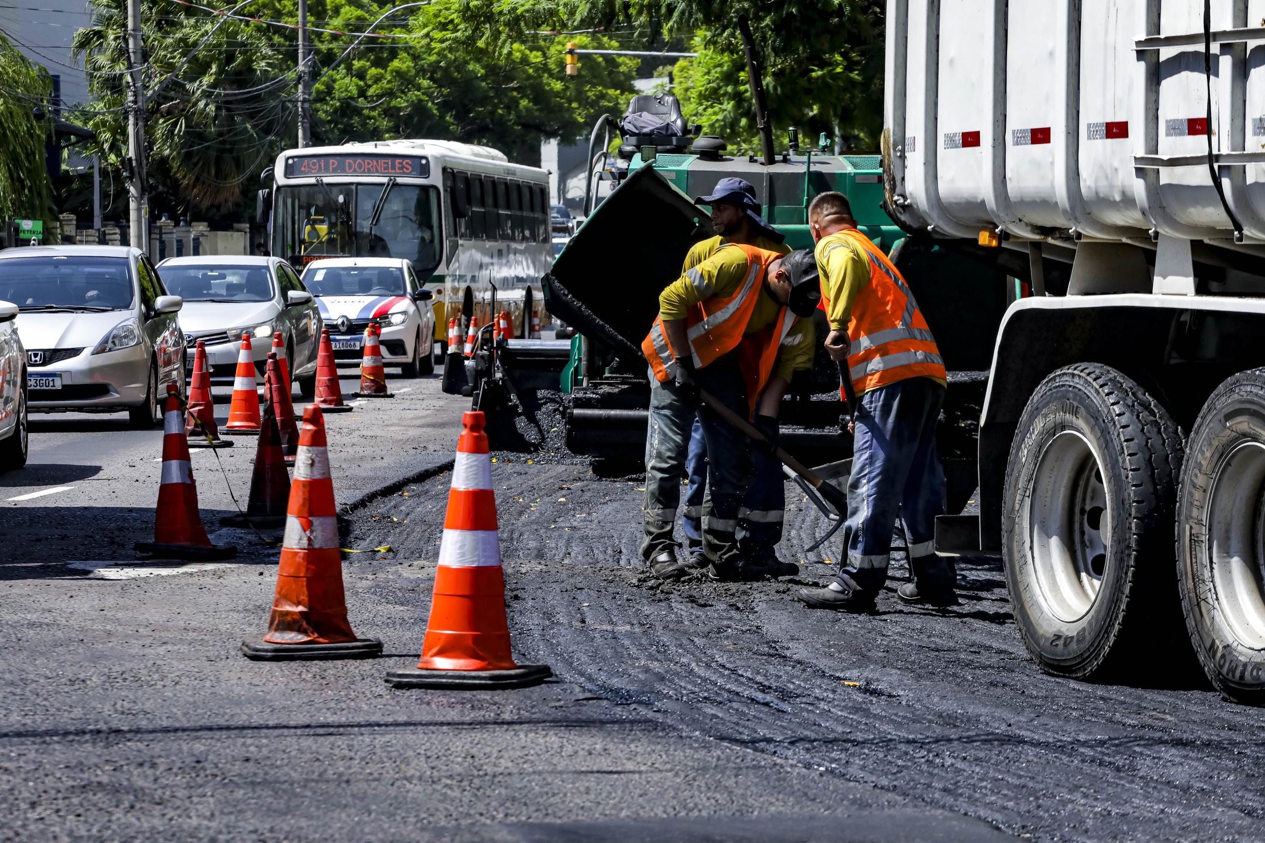 Porto Alegre, RS, Brasil, 12/02/2026: Equipes da Secretaria Municipal de Serviços Urbanos (SMSUrb) iniciaram nesta quarta-feira, 11, os trabalhos de requalificação asfáltica no Túnel da Conceição, no sentido bairro-Centro. A intervenção ocorre na faixa junto ao meio-fio, desde a saída do túnel até o cruzamento com a avenida Osvaldo Aranha, com foco na melhoria das condições de circulação e segurança viária. Foto: Alex Rocha/PMPA
