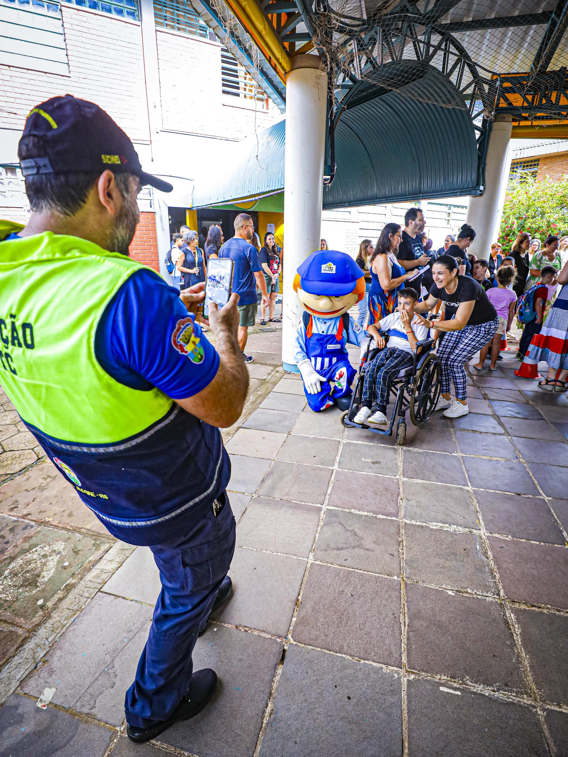 Porto Alegre, RS, Brasil, 18/02/2026: As aulas da rede municipal de ensino retornam nesta quarta-feira, 18, e as escolas já organizam uma recepção especial para acolher os estudantes após quase 60 dias de recesso. A proposta é marcar o início do ano letivo com atividades que reforcem o vínculo, o entusiasmo e o sentimento de pertencimento. Na Escola Municipal de Ensino Fundamental (Emef) Prof. Anísio Teixeira, por exemplo, os alunos foram recebidos com um espaço instagramável para fotos e distribuição de sacolés. Foto: Alex Rocha/PMPA