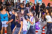 Porto Alegre, RS, Brasil, 18/02/2026: As aulas da rede municipal de ensino retornam nesta quarta-feira, 18, e as escolas já organizam uma recepção especial para acolher os estudantes após quase 60 dias de recesso. A proposta é marcar o início do ano letivo com atividades que reforcem o vínculo, o entusiasmo e o sentimento de pertencimento. Na Escola Municipal de Ensino Fundamental (Emef) Prof. Anísio Teixeira, por exemplo, os alunos foram recebidos com um espaço instagramável para fotos e distribuição de sacolés. Foto: Alex Rocha/PMPA