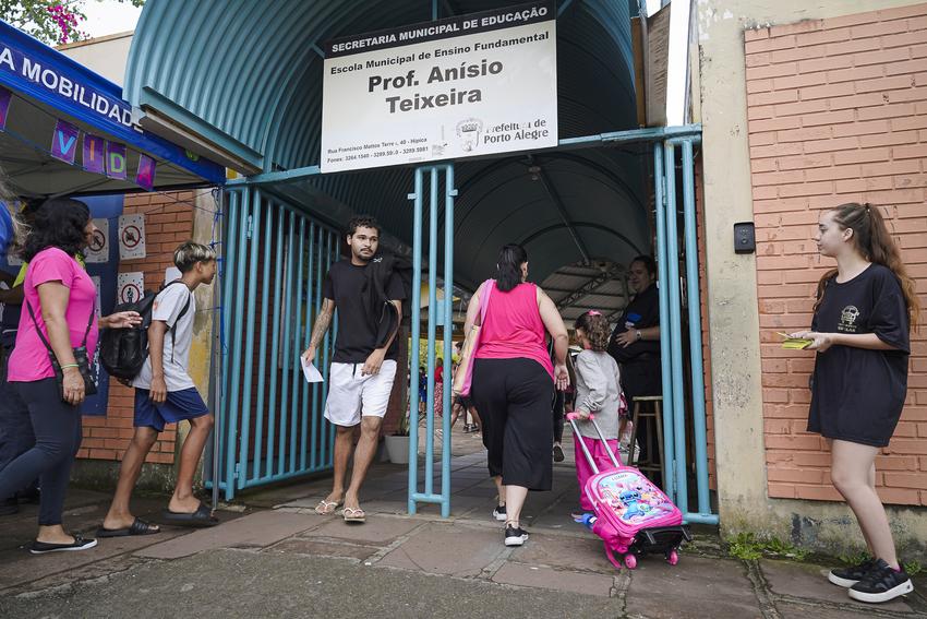 Porto Alegre, RS, Brasil, 18/02/2026: As aulas da rede municipal de ensino retornam nesta quarta-feira, 18, e as escolas já organizam uma recepção especial para acolher os estudantes após quase 60 dias de recesso. A proposta é marcar o início do ano letivo com atividades que reforcem o vínculo, o entusiasmo e o sentimento de pertencimento. Na Escola Municipal de Ensino Fundamental (Emef) Prof. Anísio Teixeira, por exemplo, os alunos foram recebidos com um espaço instagramável para fotos e distribuição de sacolés. Foto: Cesar Lopes/PMPA