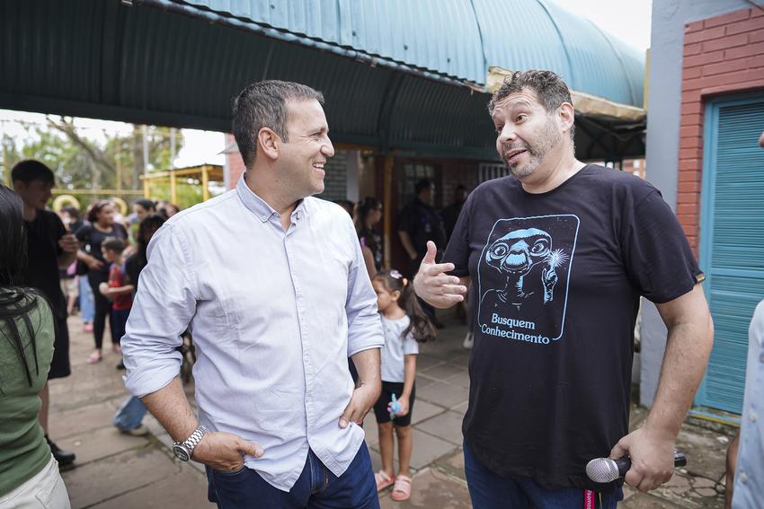 Porto Alegre, RS, Brasil, 18/02/2026: As aulas da rede municipal de ensino retornam nesta quarta-feira, 18, e as escolas já organizam uma recepção especial para acolher os estudantes após quase 60 dias de recesso. A proposta é marcar o início do ano letivo com atividades que reforcem o vínculo, o entusiasmo e o sentimento de pertencimento. Na Escola Municipal de Ensino Fundamental (Emef) Prof. Anísio Teixeira, por exemplo, os alunos foram recebidos com um espaço instagramável para fotos e distribuição de sacolés. Foto: Cesar Lopes/PMPA