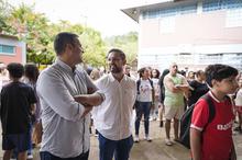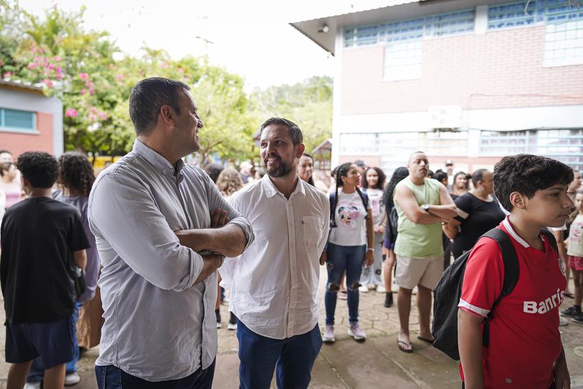 Porto Alegre, RS, Brasil, 18/02/2026: As aulas da rede municipal de ensino retornam nesta quarta-feira, 18, e as escolas já organizam uma recepção especial para acolher os estudantes após quase 60 dias de recesso. A proposta é marcar o início do ano letivo com atividades que reforcem o vínculo, o entusiasmo e o sentimento de pertencimento. Na Escola Municipal de Ensino Fundamental (Emef) Prof. Anísio Teixeira, por exemplo, os alunos foram recebidos com um espaço instagramável para fotos e distribuição de sacolés. Foto: Cesar Lopes/PMPA