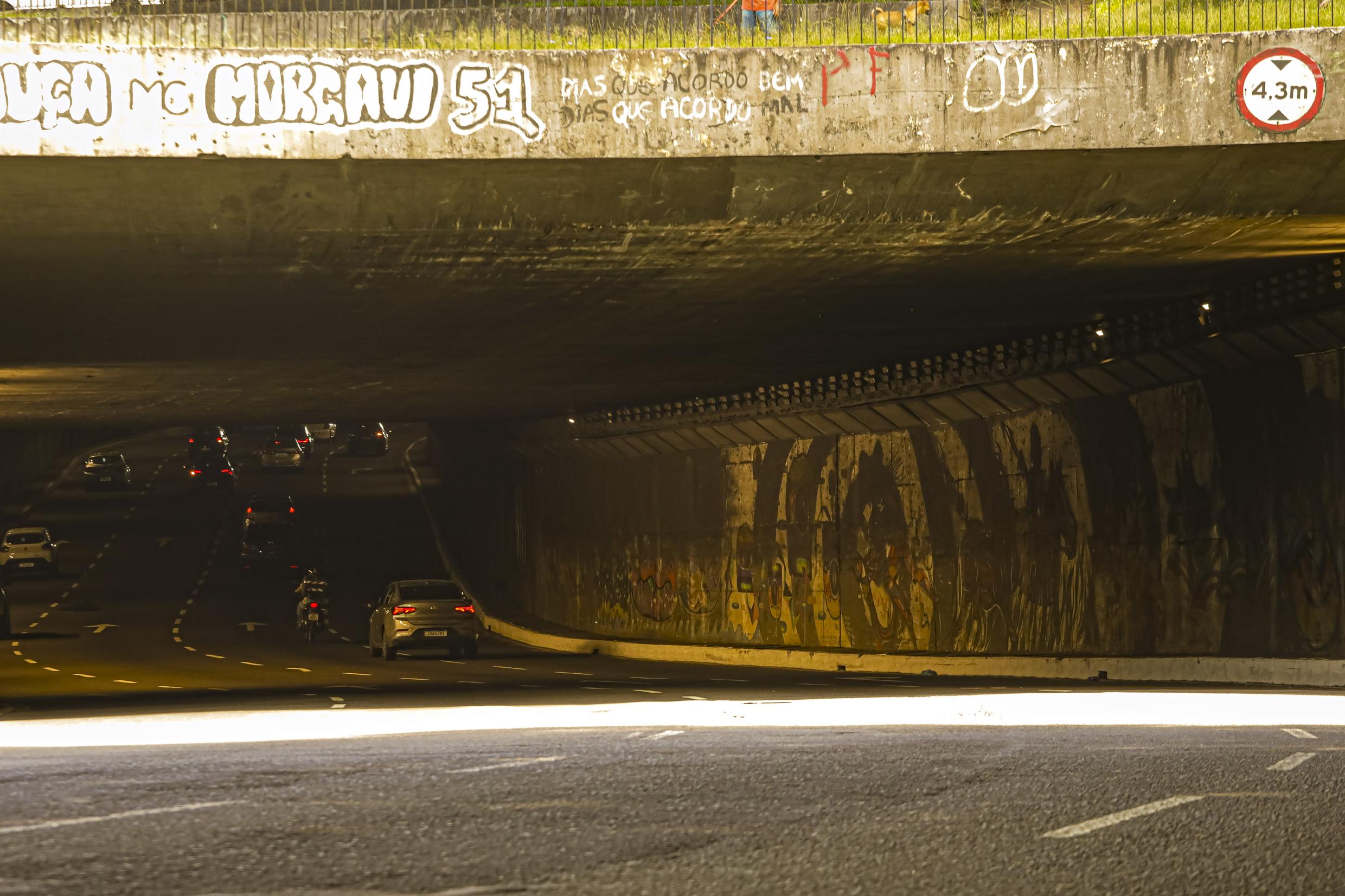 Porto Alegre, RS, Brasil, 19/02/2026: A iluminação do Túnel da Conceição foi reestabelecida parcialmente na manhã desta quinta-feira (19), no sentido Osvaldo - Rodoviária, após ter sido alvo de vandalismo na madrugada de ontem (18). Foto: Alex Rocha/PMPA