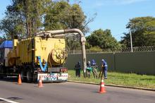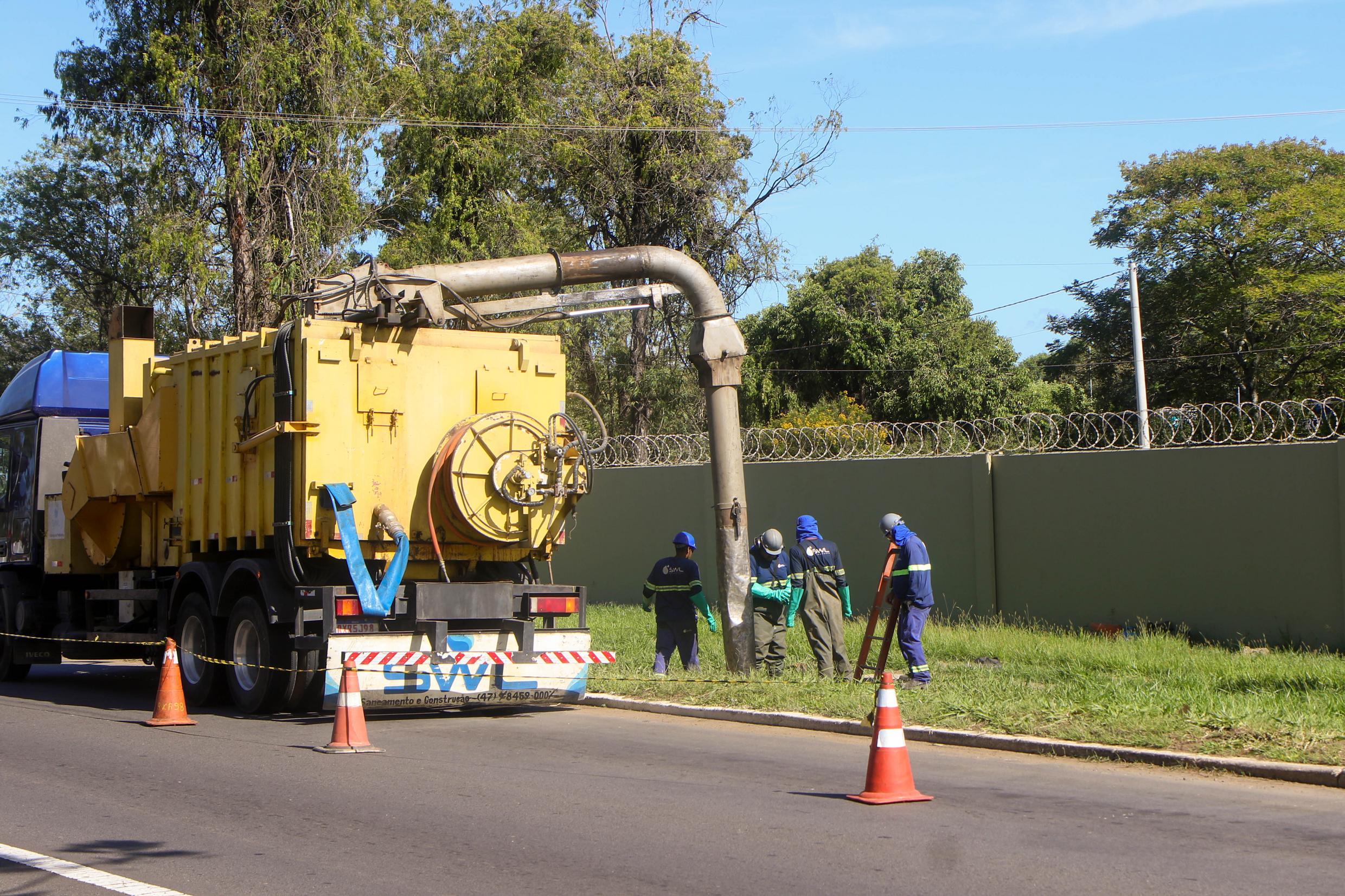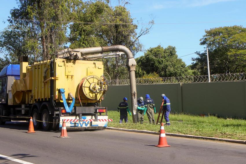 Porto Alegre, RS. 23/02/2026. DMAE realiza limpeza de redes de drenagem na Av. Sertório, no bairro Santa maria Goretti.