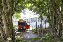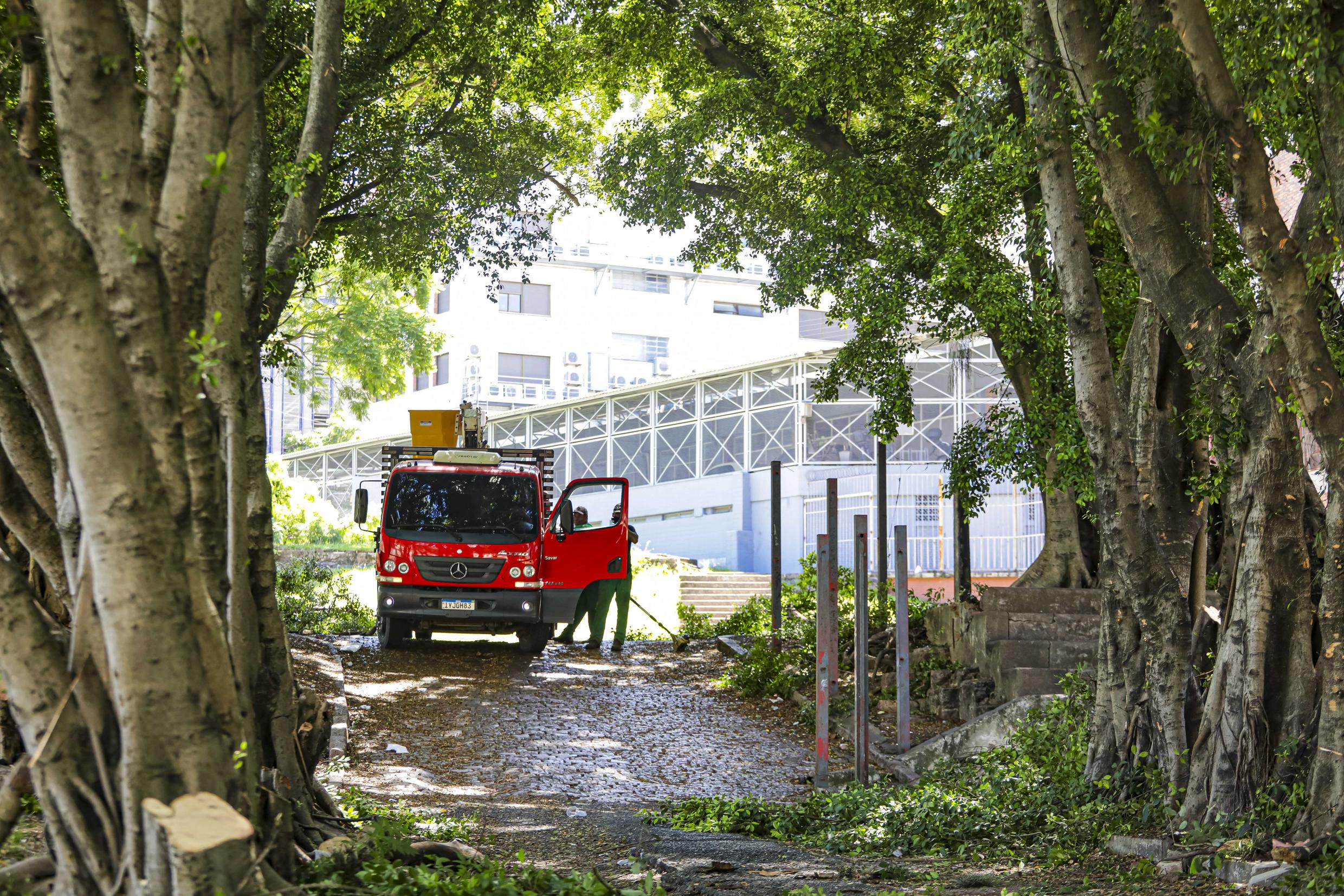 Porto Alegre, RS, Brasil, 23/02/2026: Equipes da prefeitura realizaram, nesta segunda-feira (23), o serviço de podas de manutenção no entorno do Viaduto da Conceição. Foto: Alex Rocha/PMPA