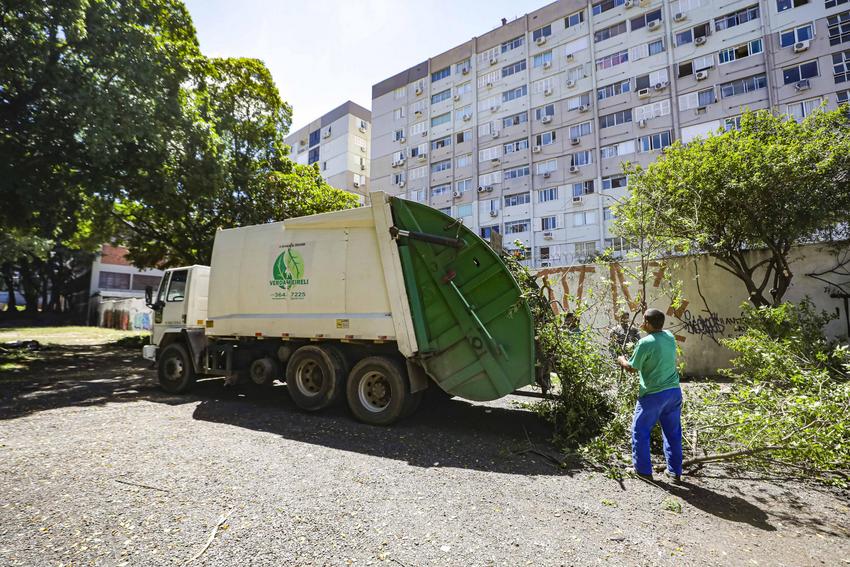 Porto Alegre, RS, Brasil, 23/02/2026: Equipes da prefeitura realizaram, nesta segunda-feira (23), o serviço de podas de manutenção no entorno do Viaduto da Conceição. Foto: Alex Rocha/PMPA