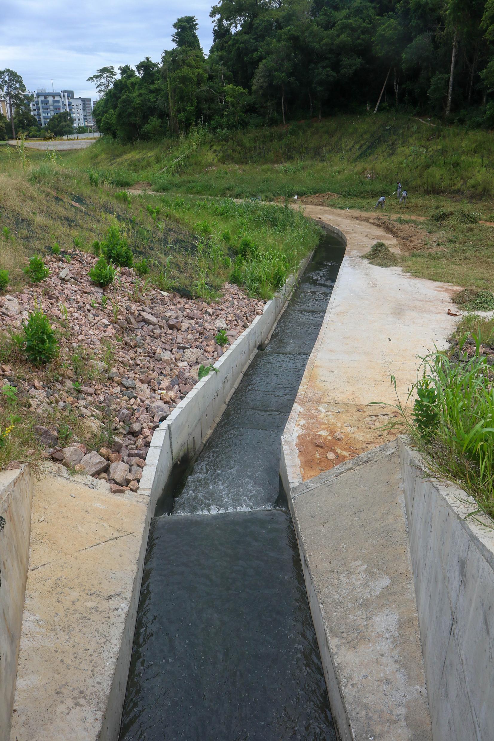 Porto Alegre, RS. 24/02/2026. Conclusão das obras do Reservatório de contenção R-15 da bacia do Arroio Areia no Country club.