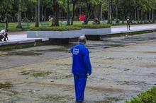 Porto Alegre, RS, Brasil, 24/02/2026: A Secretaria Municipal de Serviços Urbanos (SMSUrb), executa o serviço de limpeza do espelho d'água da Redenção. A manutenção ocorre trimestralmente e o processo de limpeza inicia com a remoção da água, depois as equipes removem o lodo e os resíduos do fundo do espelho e, por fim, é reabastecido o espelho d'água. Foto: Alex Rocha/PMPA