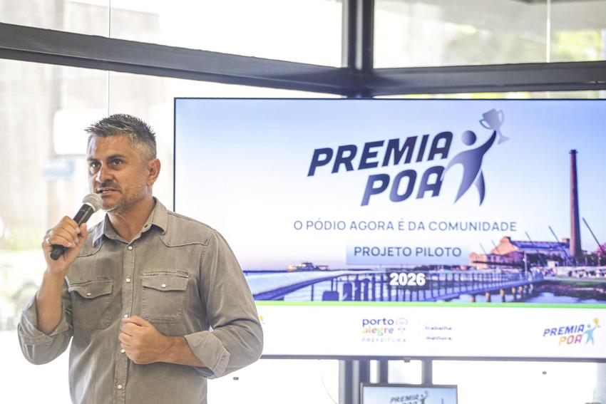 Porto Alegre, RS, Brasil, 26/02/2026: Na manhã desta quinta-feira (26), no espaço SmartLab da Procempa, localizado no térreo do Centro Administrativo Municipal Guilherme Socias Villela (CAM), ocorreu a cerimônia de lançamento do projeto Premia POA, da Secretaria Municipal de Esporte e Lazer (Smel). O Projeto, visa incentivar os eventos esportivos comunitários, amadores e escolares de Porto Alegre por meio do fornecimento de kit’s de premiação (troféus e medalhas) e infraestrutura (toldos e sonorização). Foto: Alex Rocha/PMPA