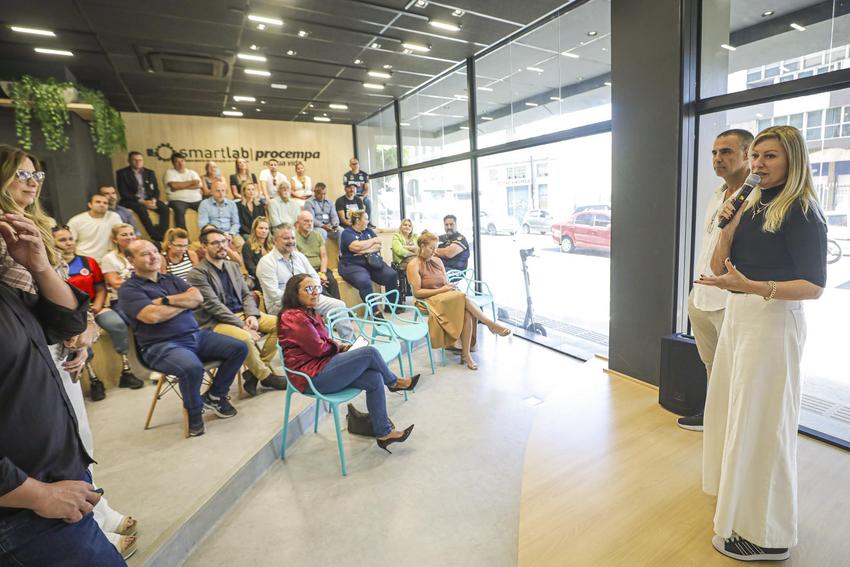 Porto Alegre, RS, Brasil, 26/02/2026: Na manhã desta quinta-feira (26), no espaço SmartLab da Procempa, localizado no térreo do Centro Administrativo Municipal Guilherme Socias Villela (CAM), ocorreu a cerimônia de lançamento do projeto Premia POA, da Secretaria Municipal de Esporte e Lazer (Smel). O Projeto, visa incentivar os eventos esportivos comunitários, amadores e escolares de Porto Alegre por meio do fornecimento de kit’s de premiação (troféus e medalhas) e infraestrutura (toldos e sonorização). Foto: Alex Rocha/PMPA