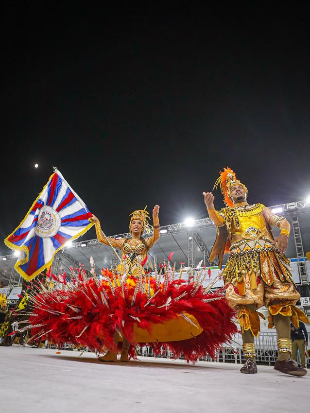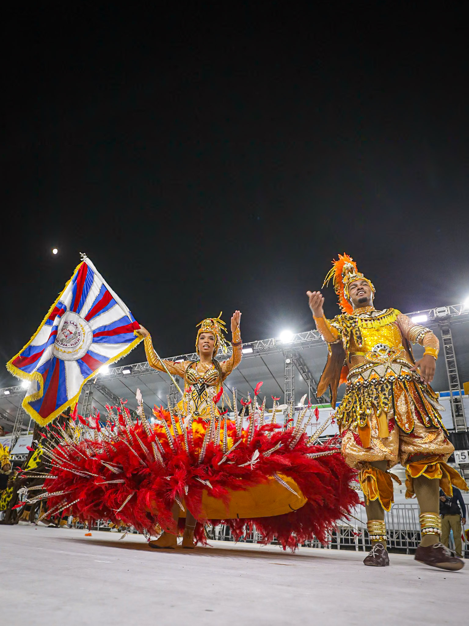 Porto Alegre, RS, Brasil, 27/02/2026: A União da Vila do IAPI, que entrou na avenida nesta sexta-feira, 27, levou para a avenida no Carnaval de 2026 o enredo Umbanda! Luz, Amor, Reinos e Planos!, uma celebração da religiosidade afro-brasileira e de sua importância na formação da identidade nacional. A escola contou a trajetória dessa fé nascida do sincretismo entre tradições africanas, indígenas, cristãs e espíritas, destacando sua missão de promover a caridade, a evolução espiritual e o respeito à diversidade por meio da conexão entre o mundo físico e os diferentes planos espirituais. Foto: Alex Rocha/PMPA