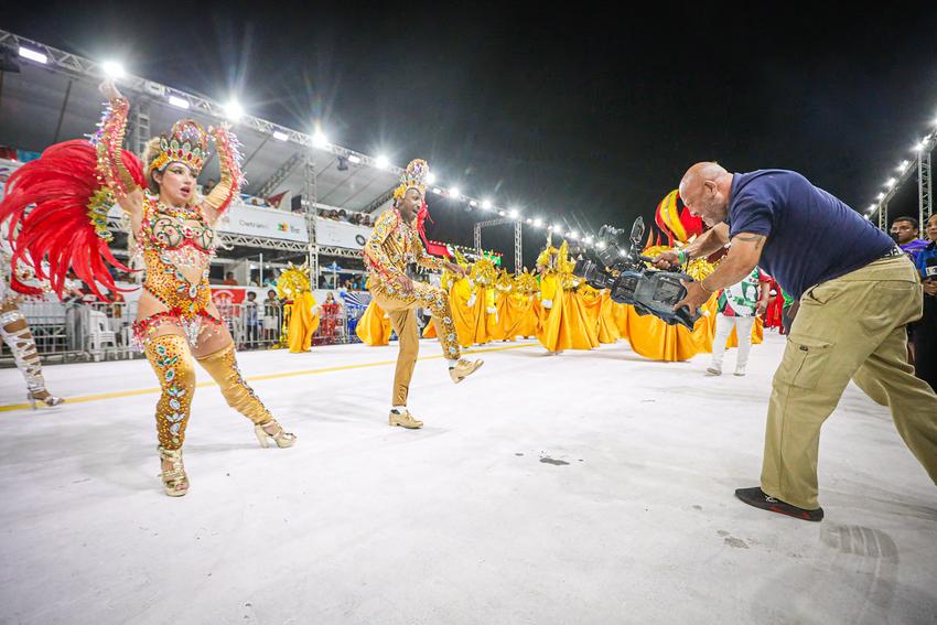 Porto Alegre, RS, Brasil, 27/02/2026: A S.B.C.F. Escola de Samba Protegidos da Princesa Isabel apresentou nesta sexta-feira, 27, no Carnaval de Porto Alegre, o enredo A Alquimia da Existência – Protegidos pela Magia dos Quatro Elementos. A escola propôs uma jornada simbólica e ancestral para desvendar as forças invisíveis que sustentam o universo, apresentando os alquimistas como artesãos do invisível que buscam decifrar a essência da vida em seus laboratórios. Foto: Alex Rocha/PMPA