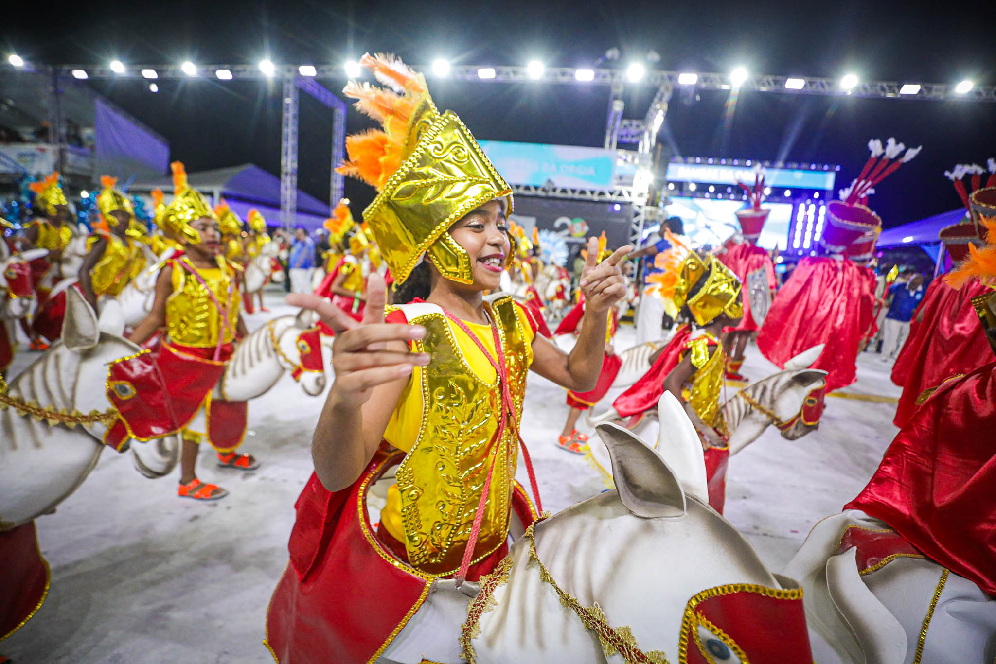 Porto Alegre, RS, Brasil, 27/02/2026: A S.B.C. Bambas da Orgia trouxe para o Complexo Cultural do Porto Seco nesta sexta-feira, 27, o enredo Apaguem as luzes!, uma celebração lúdica e poética ao fascínio da sétima arte. A escola transformou o desfile em uma grande sessão de cinema, o Cine Bambas, onde a narrativa se guiou pelas emoções e sensações proporcionadas pelas telonas, desde o mistério das sombras até o brilho do sucesso. Foto: Alex Rocha/PMPA