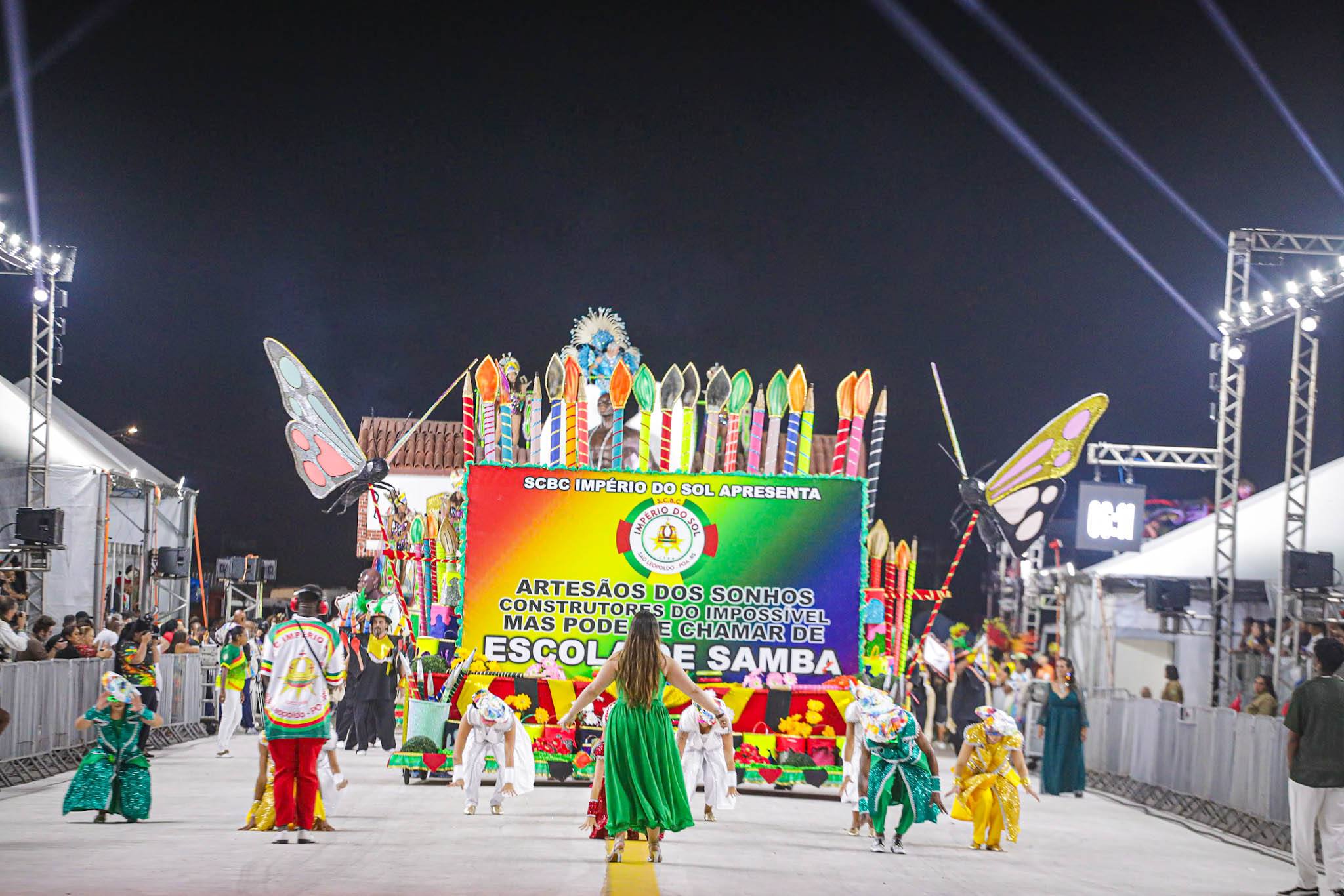 Porto Alegre, RS, Brasil, 27/02/2026: Nesta sexta-feira, 27, o Carnaval de Porto Alegre recebeu a S.C.B.C. Império do Sol. A escola de samba levou para o Complexo Cultural do Porto Seco o enredo Artesãos dos Sonhos, Construtores do Impossível, mas pode me chamar de Escola de Samba. A Império prestou uma homenagem aos operários do Carnaval, os verdadeiros magos que transformam materiais simples em luxo e poesia, celebrando o suor e a criatividade de quem dá vida aos desfiles. Foto: Alex Rocha/PMPA