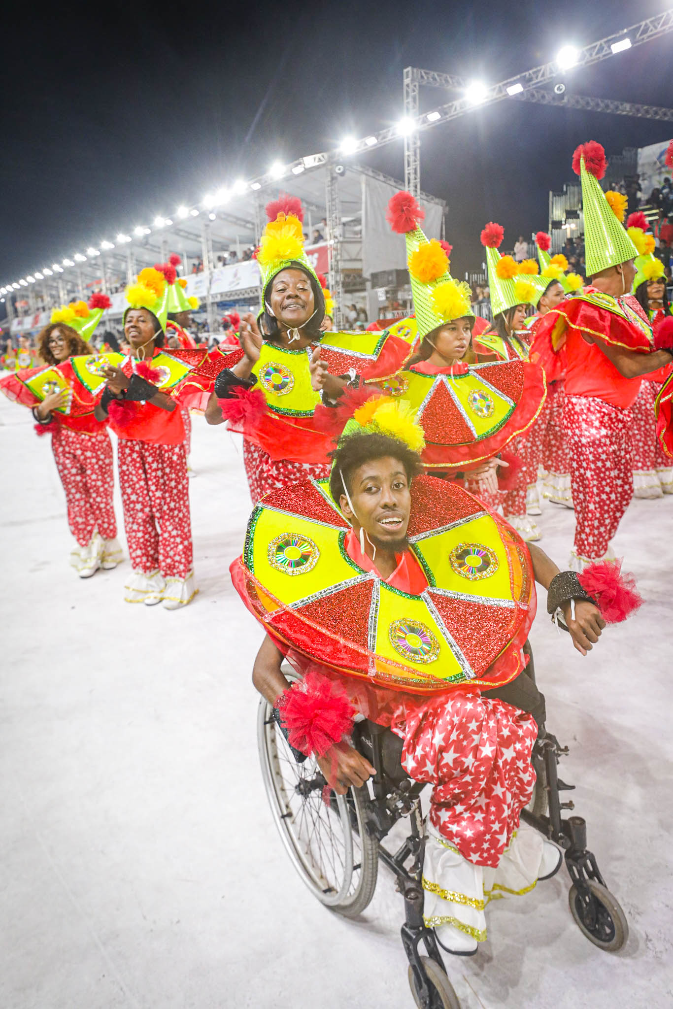 Porto Alegre, RS, Brasil, 27/02/2026: Nesta sexta-feira, 27, o Carnaval de Porto Alegre recebeu a S.C.B.C. Império do Sol. A escola de samba levou para o Complexo Cultural do Porto Seco o enredo Artesãos dos Sonhos, Construtores do Impossível, mas pode me chamar de Escola de Samba. A Império prestou uma homenagem aos operários do Carnaval, os verdadeiros magos que transformam materiais simples em luxo e poesia, celebrando o suor e a criatividade de quem dá vida aos desfiles. Foto: Alex Rocha/PMPA