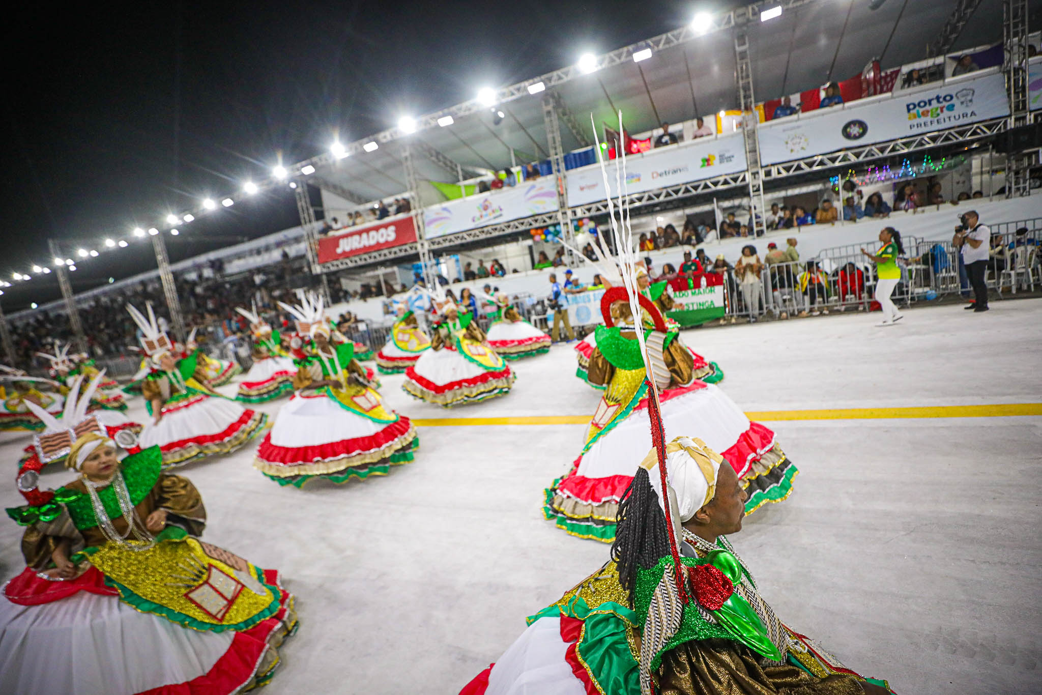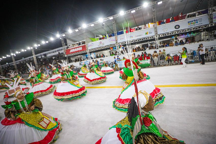 Porto Alegre, RS, Brasil, 27/02/2026: Nesta sexta-feira, 27, o Carnaval de Porto Alegre recebeu a S.C.B.C. Império do Sol. A escola de samba levou para o Complexo Cultural do Porto Seco o enredo Artesãos dos Sonhos, Construtores do Impossível, mas pode me chamar de Escola de Samba. A Império prestou uma homenagem aos operários do Carnaval, os verdadeiros magos que transformam materiais simples em luxo e poesia, celebrando o suor e a criatividade de quem dá vida aos desfiles. Foto: Alex Rocha/PMPA