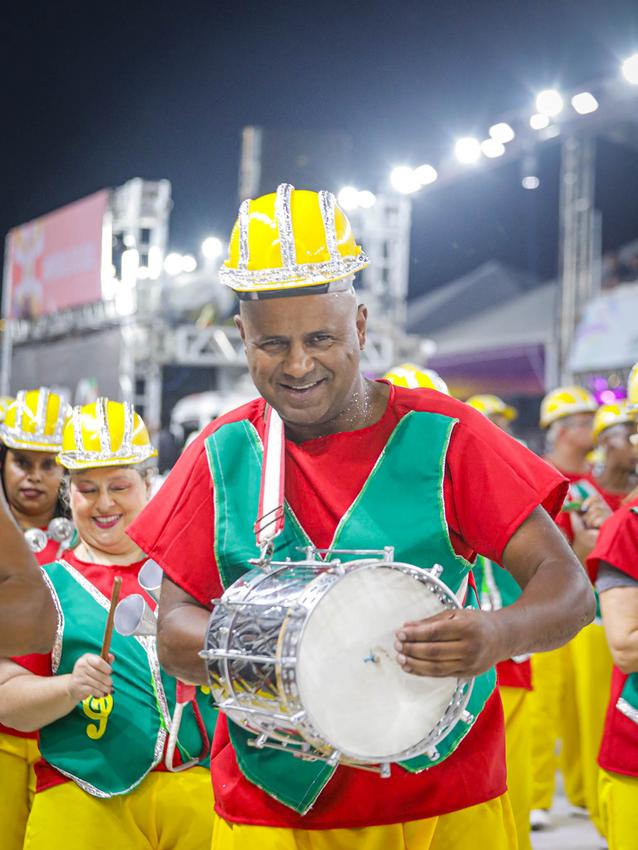 Porto Alegre, RS, Brasil, 27/02/2026: Nesta sexta-feira, 27, o Carnaval de Porto Alegre recebeu a S.C.B.C. Império do Sol. A escola de samba levou para o Complexo Cultural do Porto Seco o enredo Artesãos dos Sonhos, Construtores do Impossível, mas pode me chamar de Escola de Samba. A Império prestou uma homenagem aos operários do Carnaval, os verdadeiros magos que transformam materiais simples em luxo e poesia, celebrando o suor e a criatividade de quem dá vida aos desfiles. Foto: Alex Rocha/PMPA