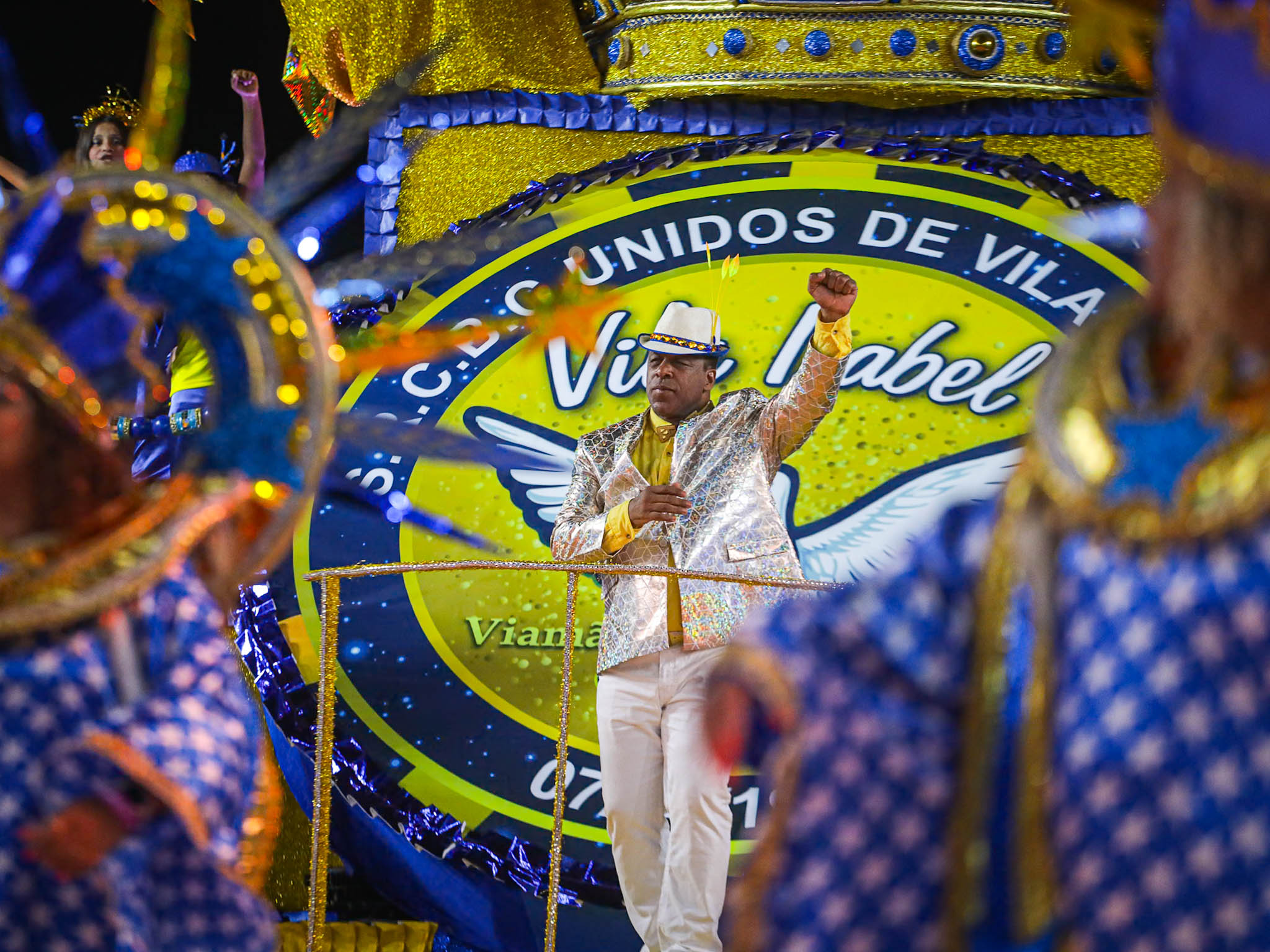 Porto Alegre, RS, Brasil, 27/02/2026: A Unidos de Vila Isabel levou para a avenida no Carnaval de 2026 o enredo Ninguém Pode Roubar os Nossos Sonhos, uma homenagem ao ator e multiartista Ailton Graça. A escola contou a trajetória do menino da periferia que, guiado pela fé, pela ancestralidade e pela arte, transformou sonhos em conquistas no teatro, no cinema, na televisão e no carnaval. Foto: Alex Rocha/PMPA
