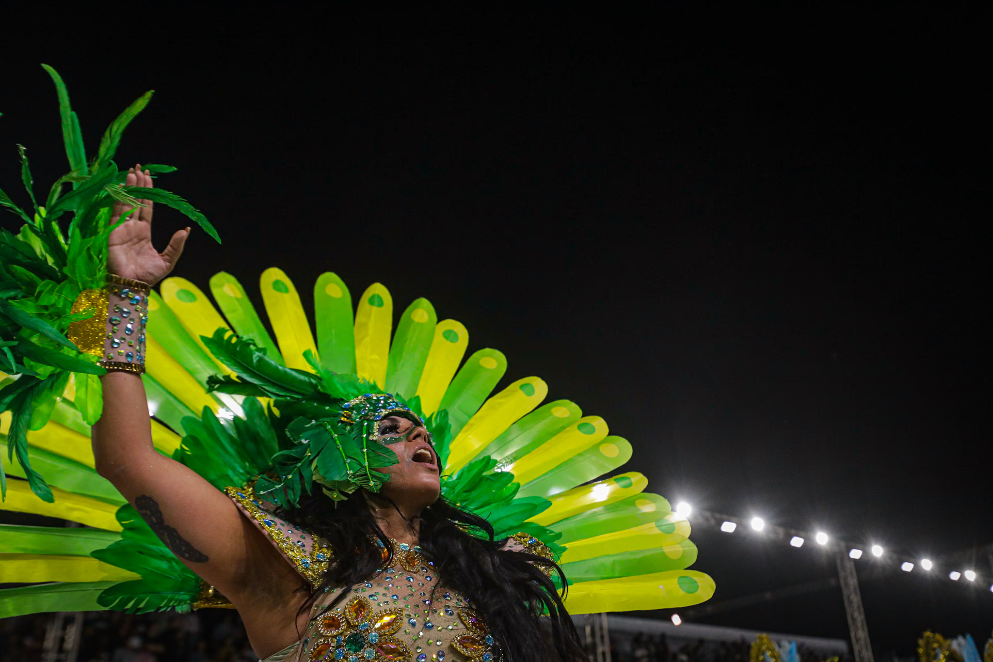 Porto Alegre, RS, Brasil, 28/02/2026: A S.B.R.C. Academia de Samba Unidos da Vila Mapa trouxe para a avenida, neste sábado, 28, o enredo Às Margens da Poesia, no Caminho das Águas: Um Banho de Axé. O desfile apresentou uma narrativa simbólica e sensorial onde a água não é apenas uma personagem, mas a própria linguagem que conduz o espectador por uma jornada de renovação e fé. Foto: Alex Rocha/PMPA