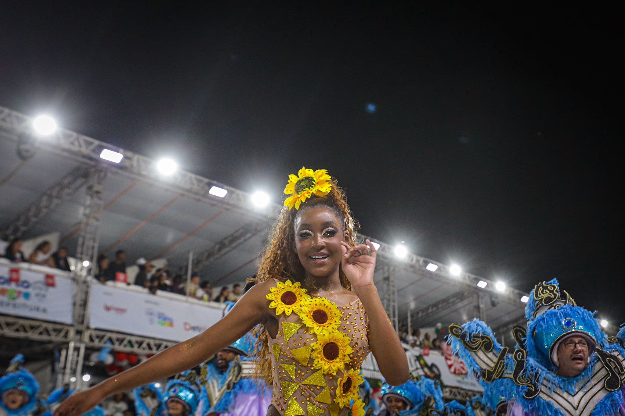 Porto Alegre, RS, Brasil, 28/02/2026: A S.B.R.C. Academia de Samba Unidos da Vila Mapa trouxe para a avenida, neste sábado, 28, o enredo Às Margens da Poesia, no Caminho das Águas: Um Banho de Axé. O desfile apresentou uma narrativa simbólica e sensorial onde a água não é apenas uma personagem, mas a própria linguagem que conduz o espectador por uma jornada de renovação e fé. Foto: Alex Rocha/PMPA