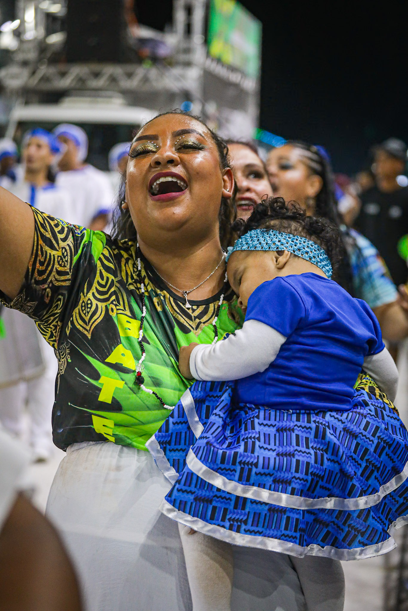 Porto Alegre, RS, Brasil, 28/02/2026: A S.B.R.C. Academia de Samba Unidos da Vila Mapa trouxe para a avenida, neste sábado, 28, o enredo Às Margens da Poesia, no Caminho das Águas: Um Banho de Axé. O desfile apresentou uma narrativa simbólica e sensorial onde a água não é apenas uma personagem, mas a própria linguagem que conduz o espectador por uma jornada de renovação e fé. Foto: Alex Rocha/PMPA