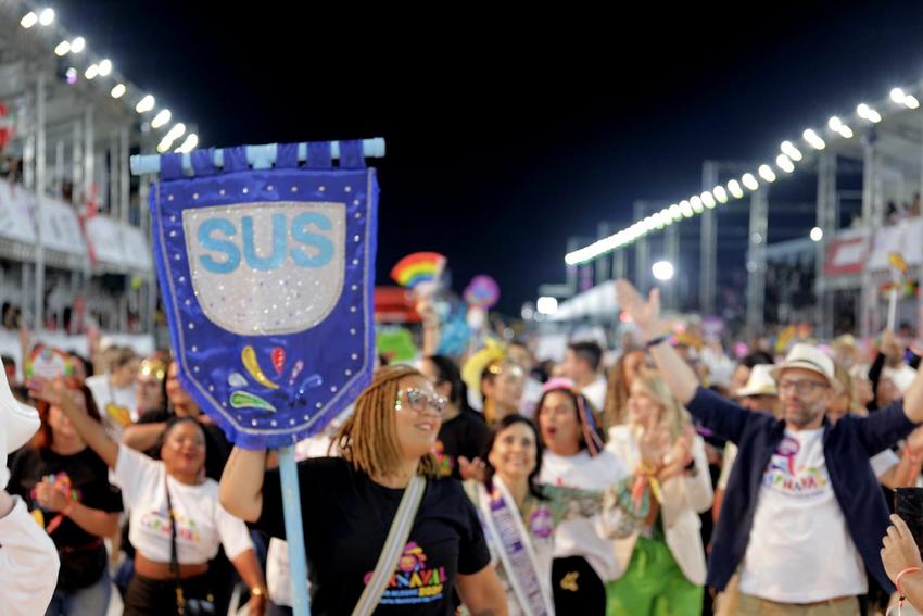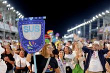 Porto Alegre, RS, Brasil, 01/03/2026: Desfile do Bloco da Saúde, na segunda noite de Desfiles do Carnaval de Porto Alegre, no Complexo Cultural do Porto Seco. Foto: Nathally Borowsky / PMPA