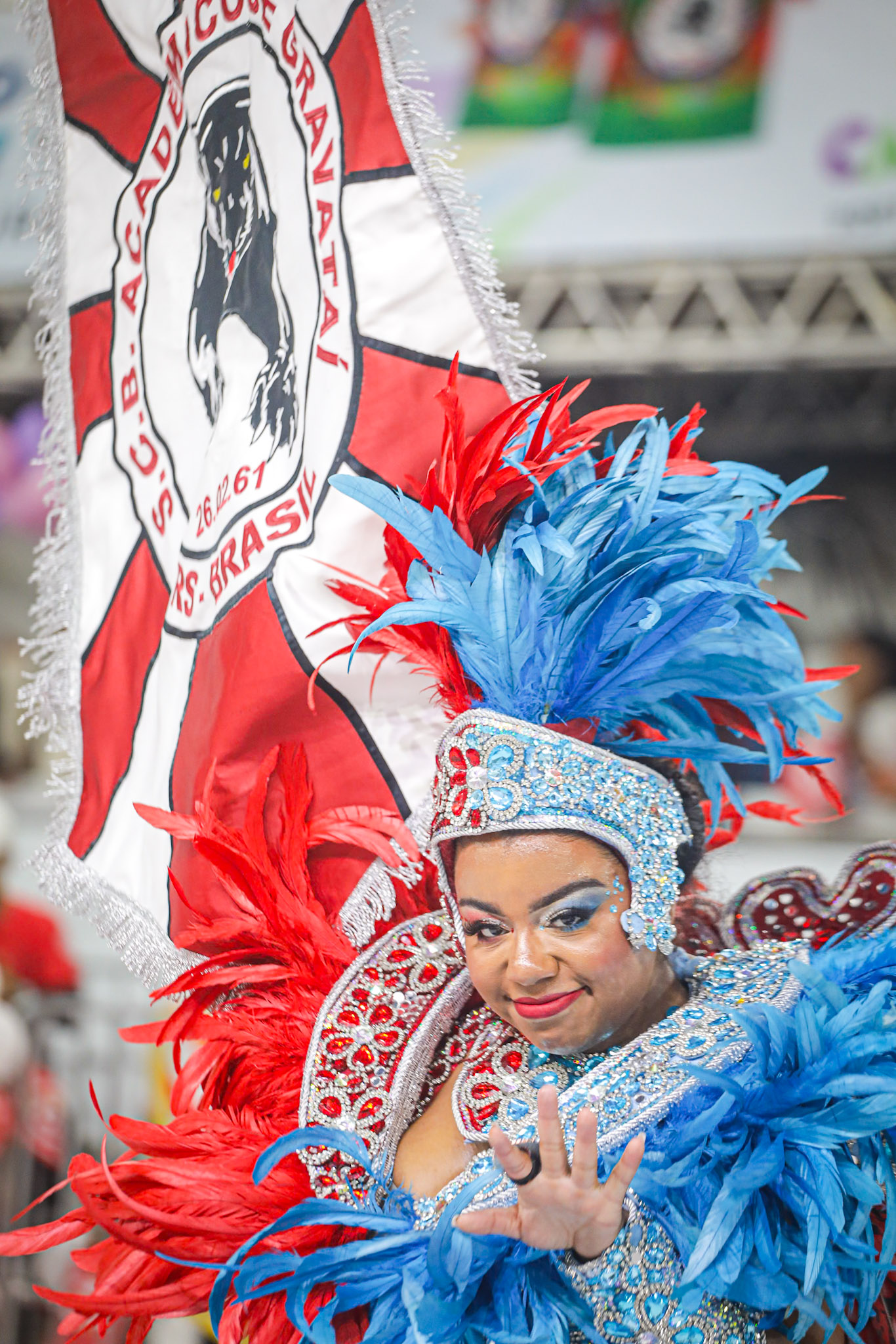 Porto Alegre, RS, Brasil, 01/03/2026: A S.C.B. Acadêmicos de Gravataí, que desfilou neste sábado, 28, teve como enredo a Amazônia Táwapayêra – A Aldeia Guardiã dos Encantos da Floresta. A escola trouxe um mergulho profundo nas raízes de um Brasil indígena, caboclo e ribeirinho, celebrando a floresta não apenas como um espaço geográfico, mas como um território sagrado de mitos e ancestralidades. A narrativa destacou a resistência dos povos originários e a proteção do Eldorado Verde contra a cobiça histórica. Foto: Alex Rocha/PMPA